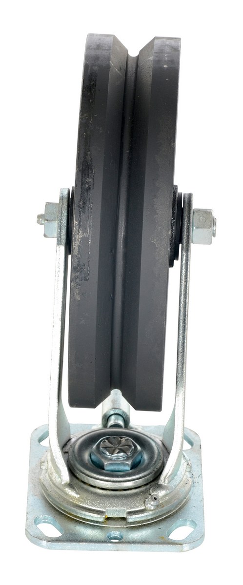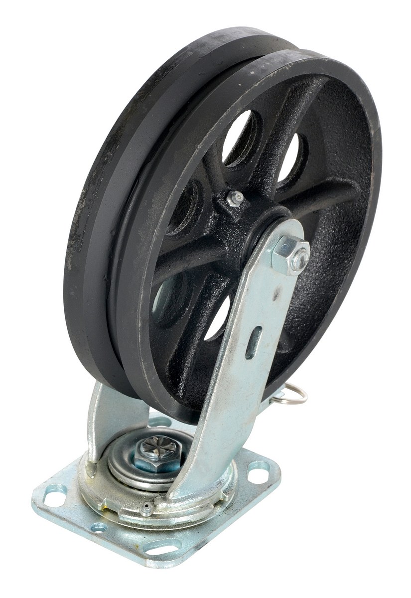 Cast Iron Swivel V-Groove Casters 8 In. x 2 In. For Steel Gantry Cranes 2,000 Lb. CapacityThe v groove caster is a great addition to the gantry crane. The design allows the unit to be utilized on a stable track for precise positioning. Simple installation with the pre drilled mounting holes.