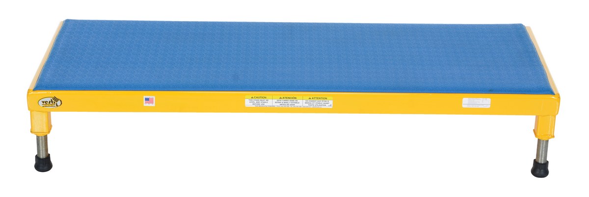 Steel Adjustable Work-Mate Stand 48 In. x 19 In. x 6-3/4 In. 500 Lb. Capacity YellowThe adjustable work-mate stand minimizes fatigue by elevating workers to heights that are comfortable and ergonomically correct. Especially useful when multiple shift employees operate the same piece of machinery. The ergonomic matting deck style provides comfort for the operator who stands all day. The height of each leg can be adjusted individually to ensure proper working height.