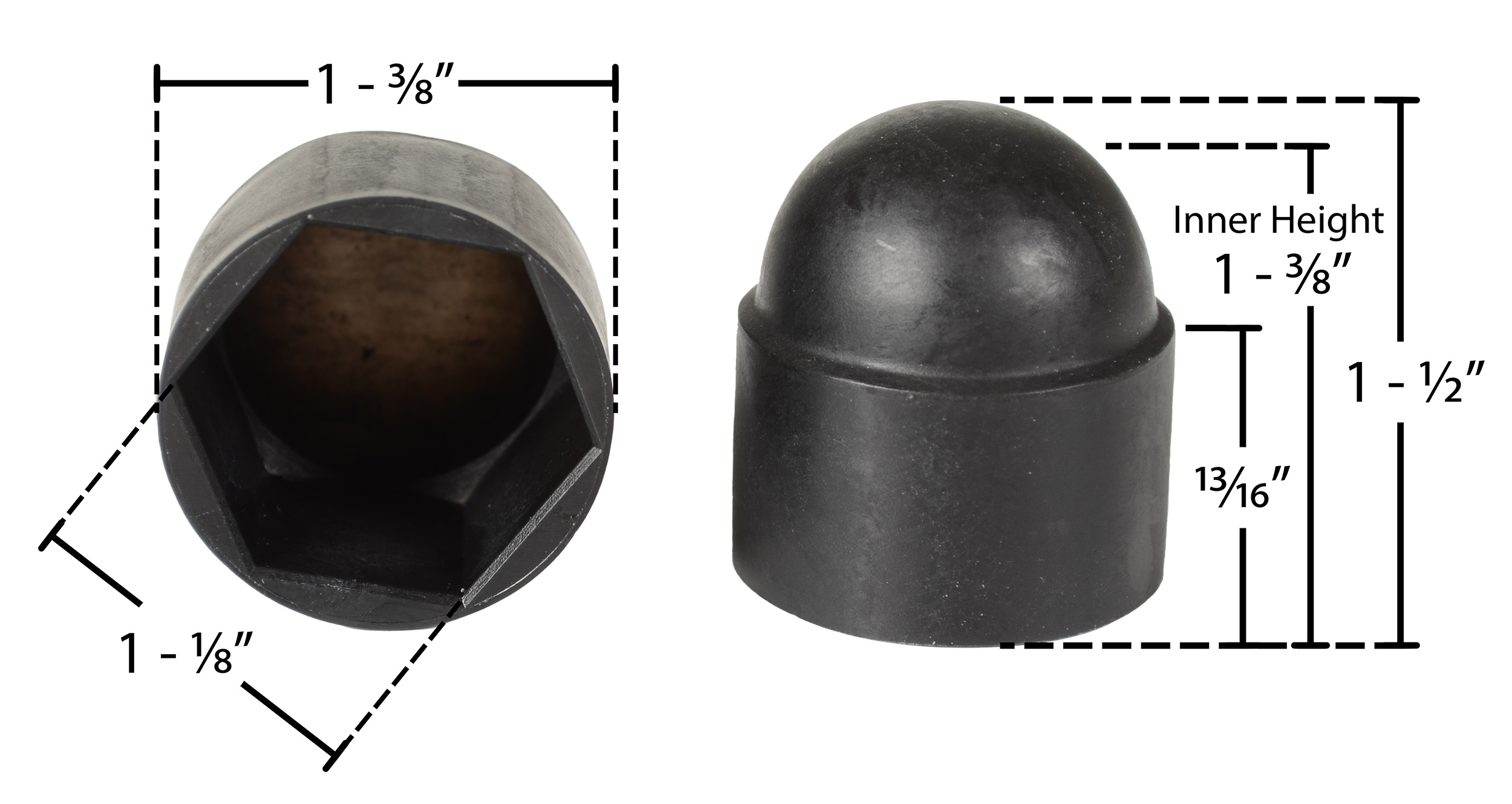 These plastic bolt caps are designed to finish and protect bolt heads. They have an easy press fit installation over the existing nut. Molded black plastic construction.