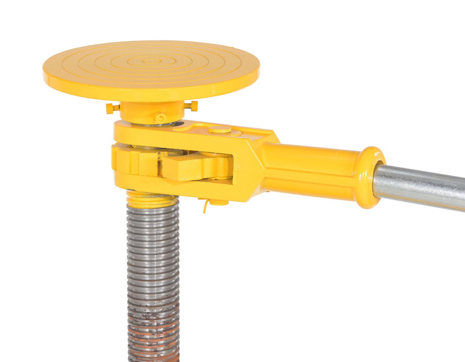 Trailer stabilizing jacks are used to prevent up-ending of semi-trailers when they are not connected to a tractor during loading and unloading operations. Throughout the loading and unloading process it is always recommended to use two jacks, one on each side of the front of the trailer. The trailer must be situated on a flat, stable and improved (preferably concrete) surface, while the jack sits perpendicular to the underside of the trailer. Every jack is built of a high strength steel construction with a flush-type Zerk fitting for lubricating ACME screw. A yellow powder coat finish is included. **The color of handles included with models may vary between red and black**.