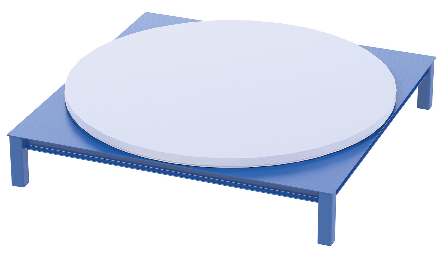 Optional elevated base for the manual carousel helps maintain products at an elevated height. A square design with four legs,one in each corner, for stability.