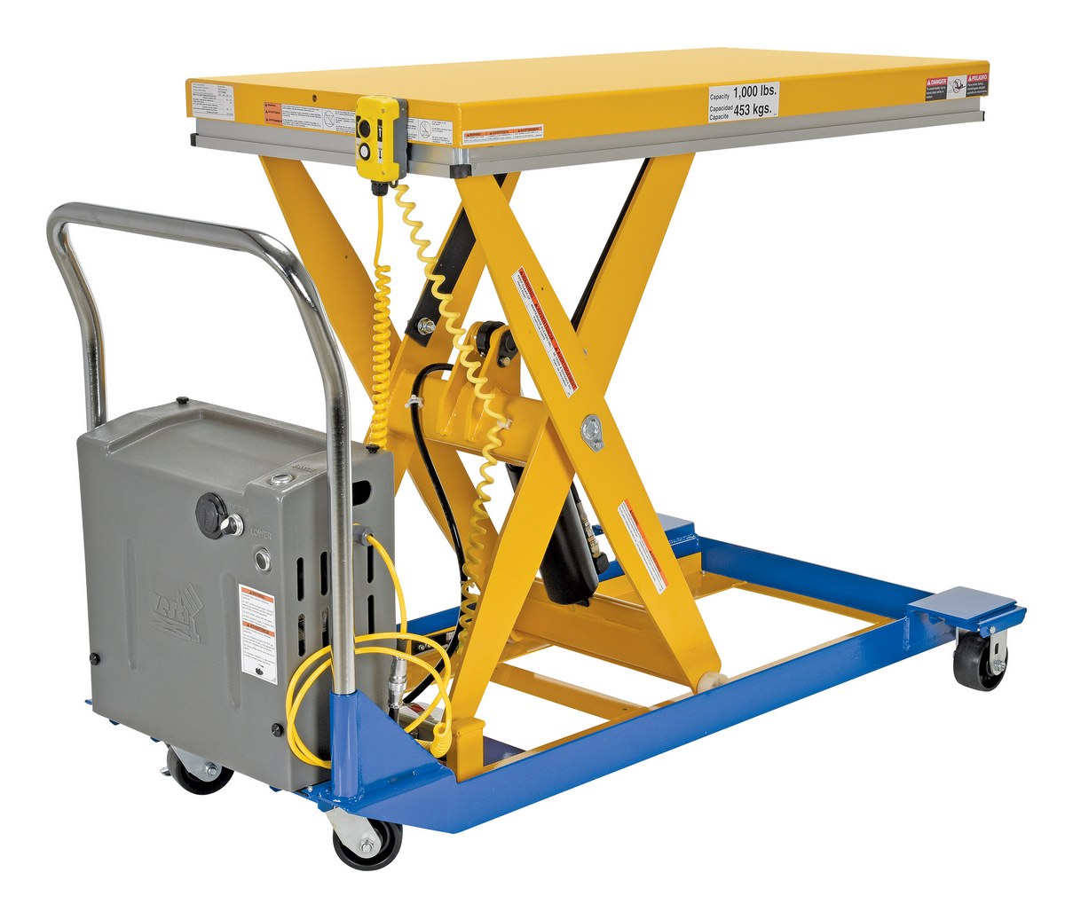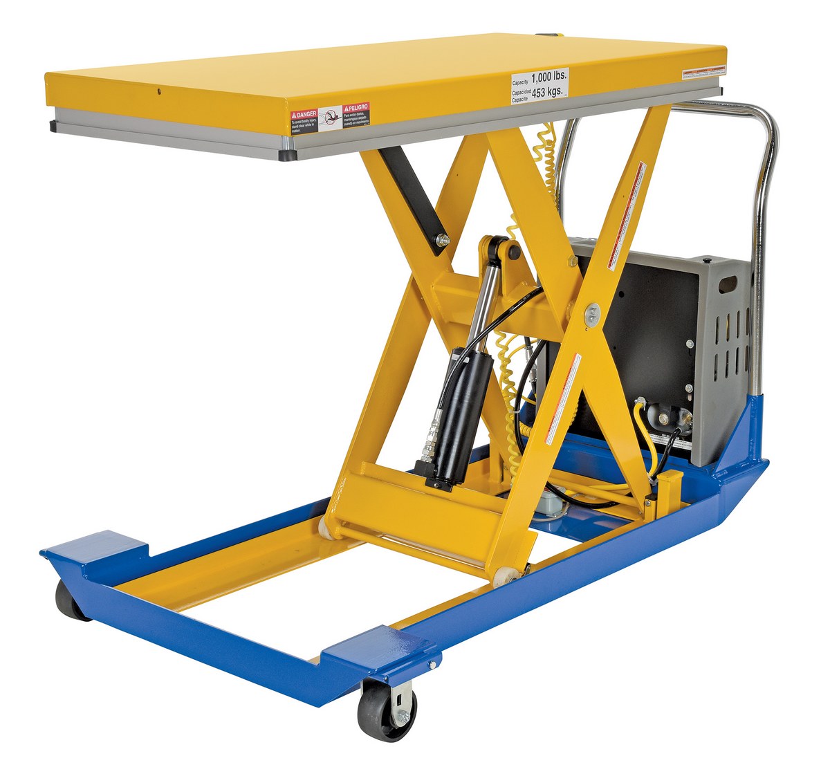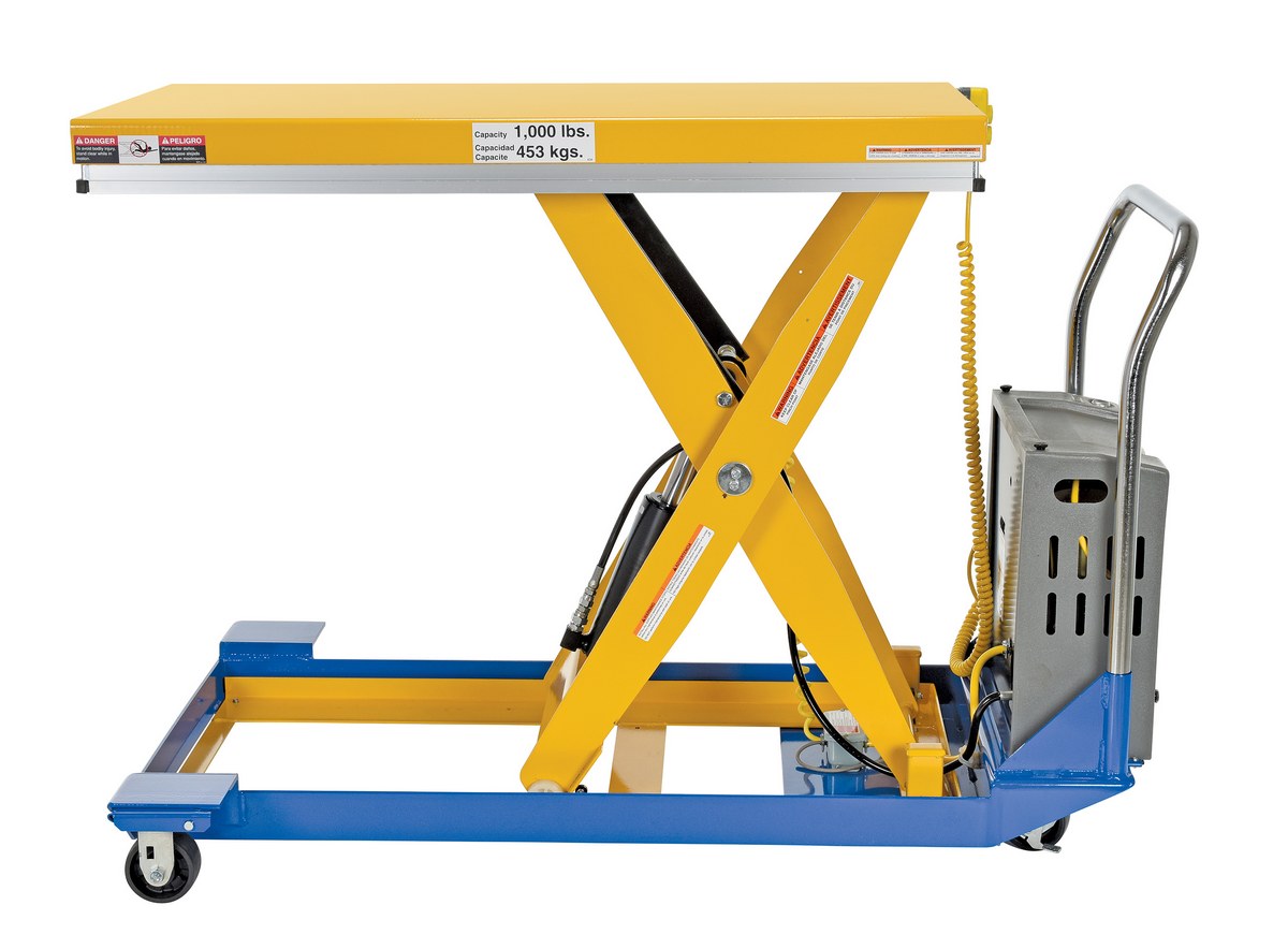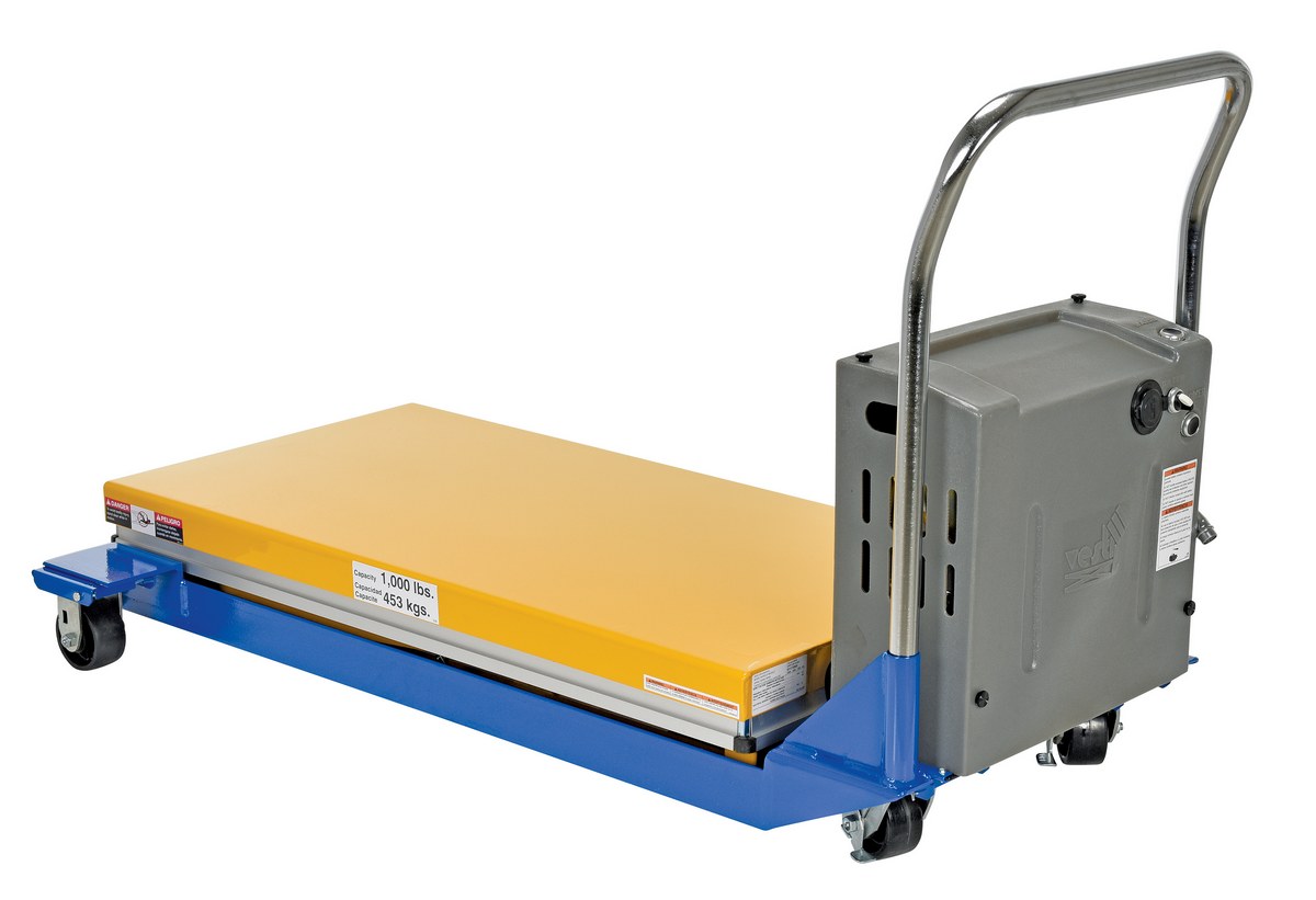 Steel DC Powered Scissor Cart 48 In. x 24 In. 1000 Lb. Capacity Blue / Yellow