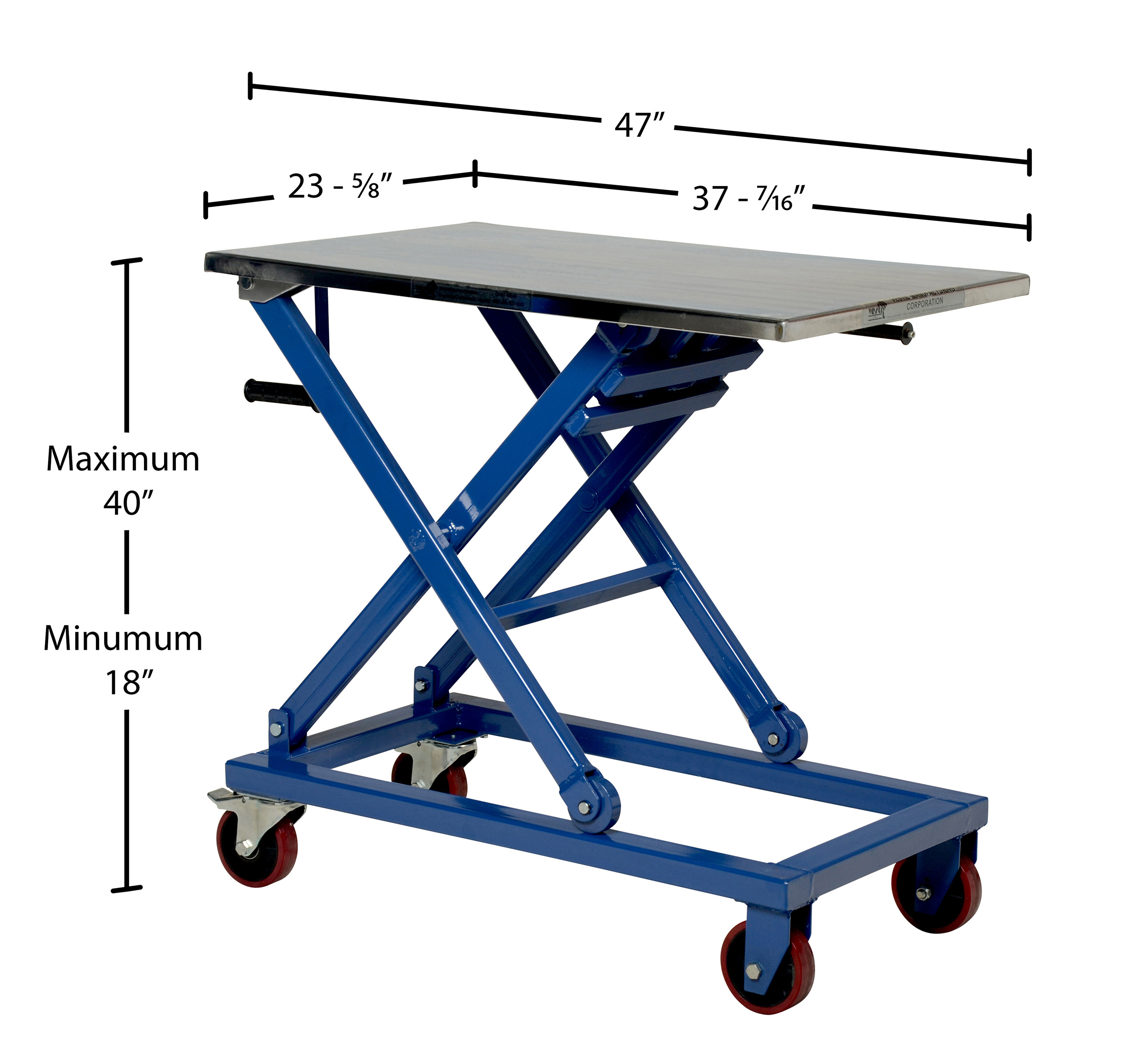 Steel Mechanical Scissor Cart 37 In. x 23-1/2 In. 660 Lb. Capacity Blue/Silver