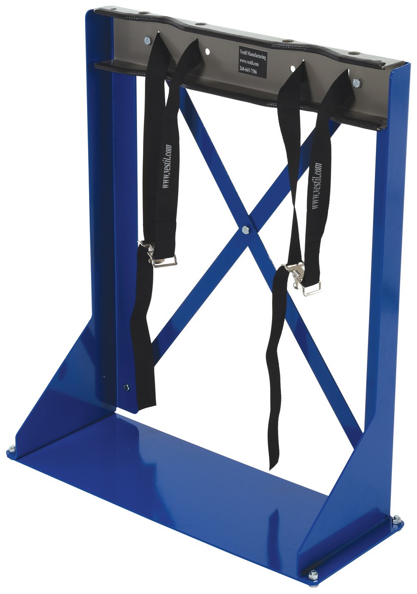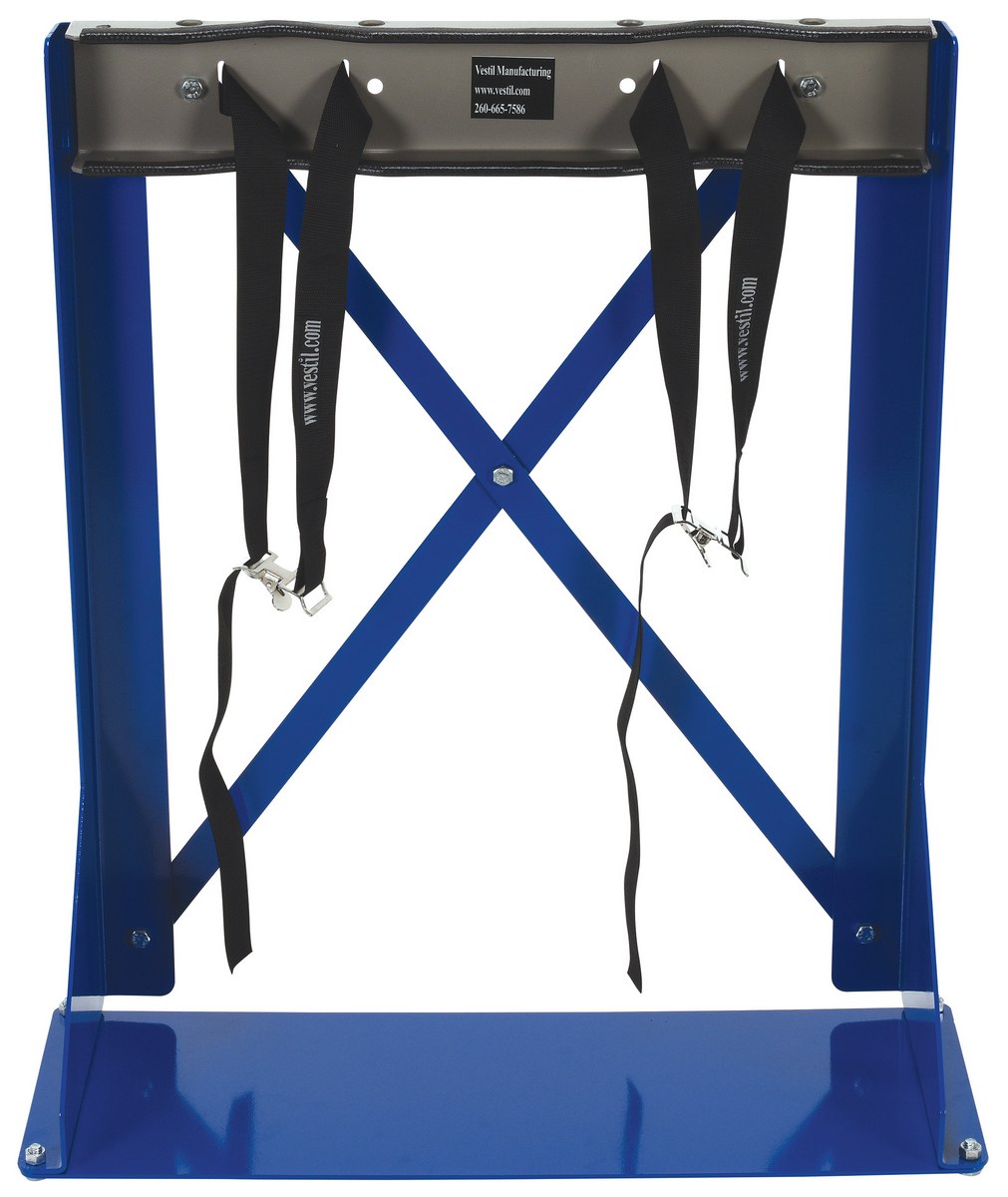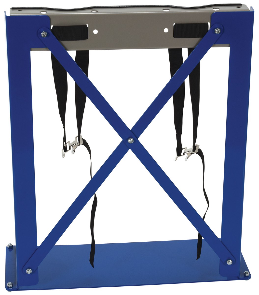 Cylinder Bracket Stand 2 Cylinder Capacity BlueThe floor-mount Cylinder bracket is easy to install and designed for easy consumer use. Simply secure cylinder with strap. Edges are protected with rubber guards. Formed steel construction. Stands feature a powder-coat blue finish, steel brackets feature gray painted finish.