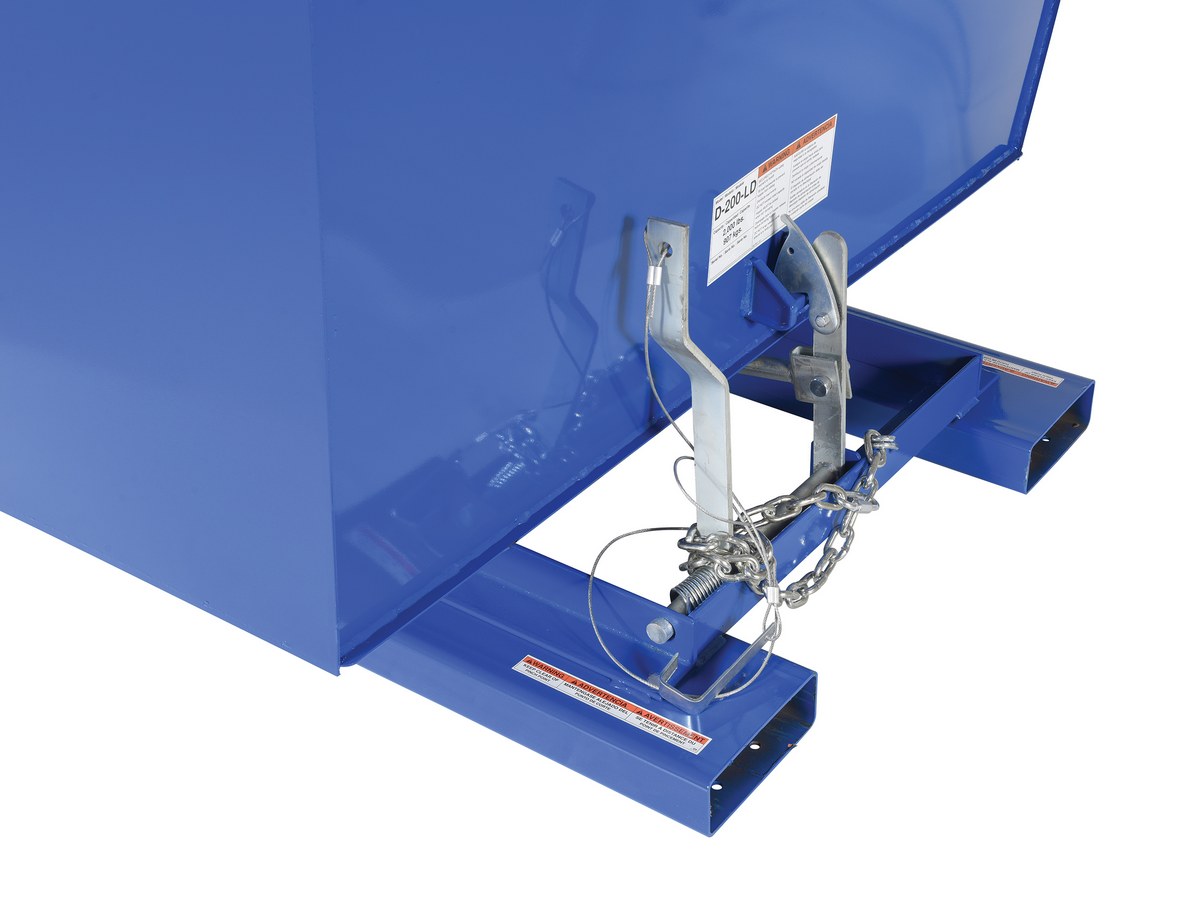 This Light Duty self-dumping steel Hopper with bumper release is ideal for the manufacturing and distributing facilities. The Hopper returns to an upright and locked position automatically after it dumps. Also includes a cable that may be operated from the seat of the fork truck to manually dump the hopper. (Length dimension is measured at top of chute.) Hopper is stackable if you stack the top hopper turned ninety (90) degrees from the bottom. Self-dumping hoppers facilitate compliance with OSHA general industry rule 29 CFR 1910.178(m)(5)(iii) by allowing lift truck operators to remain at the controls of their truck throughout the dumping process.