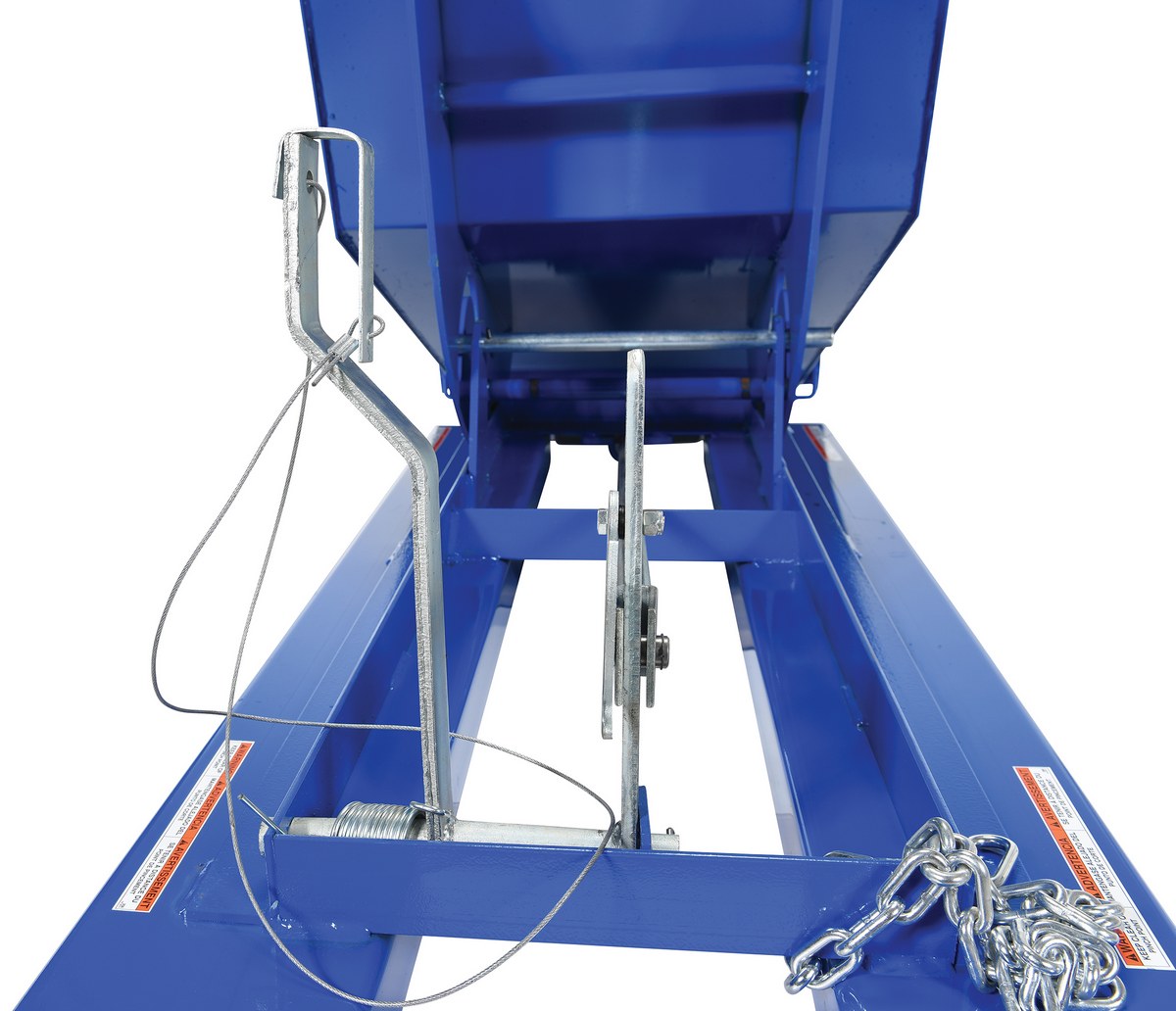 This Heavy Duty self-dumping steel Hopper with bumper release automatically dumps when bumper release contacts the front of the dumpster. Hopper returns to an upright and locked position automatically after it dumps. Also includes a cable that may be operated from the seat of the fork truck to manually dump the hopper. The included safety restraint should be properly secured to a fork truck before dumping. (Length dimension is measured at top of chute.) Hopper is stackable if you stack the top hopper turned ninety (90) degrees from the bottom. Self-dumping hoppers facilitate compliance with OSHA general industry rule 29 CFR 1910.178(m)(5)(iii) by allowing lift truck operators to remain at the controls of their truck throughout the dumping process.