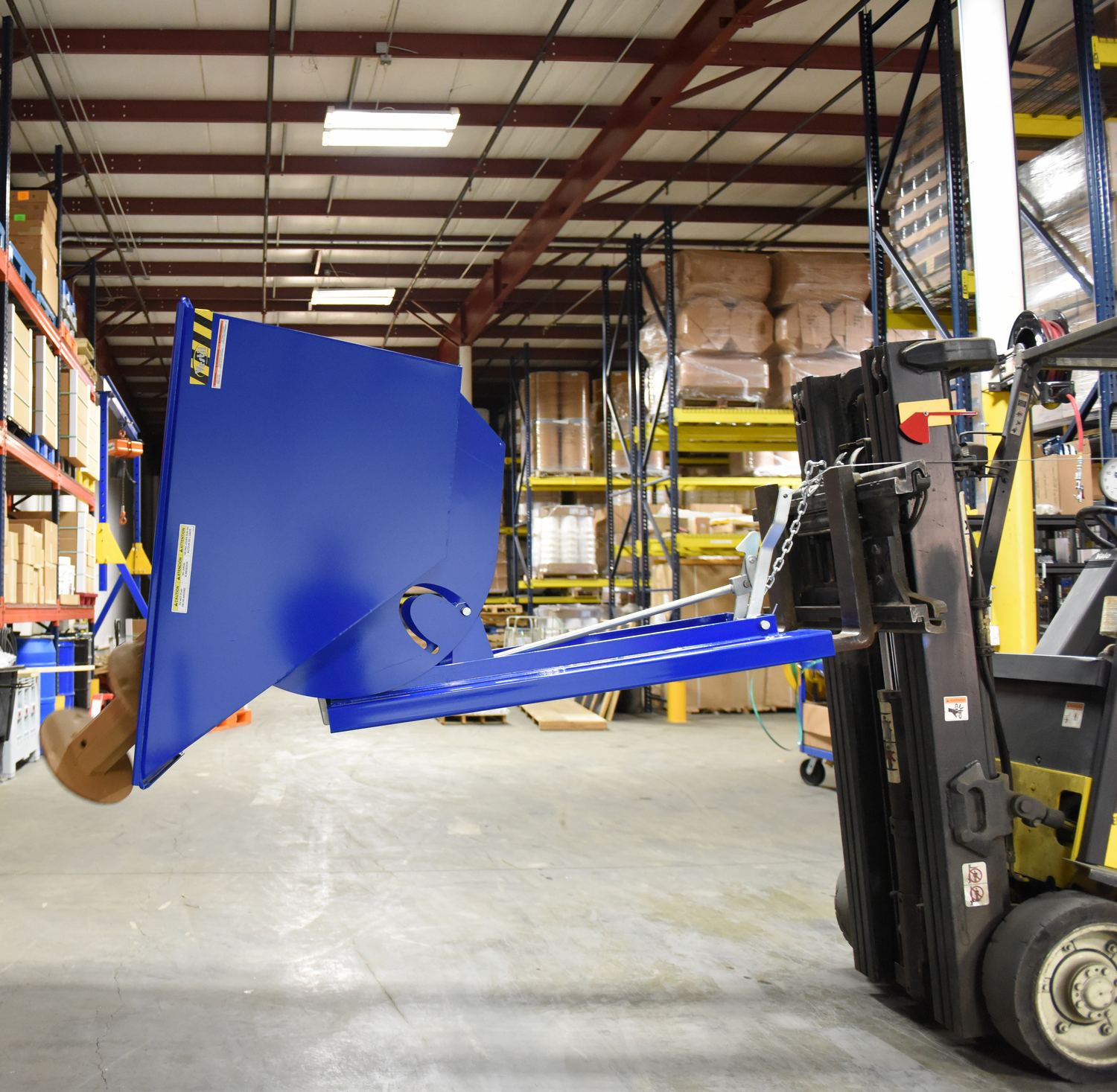 • Safety restraint secures the hopper to the fork truck