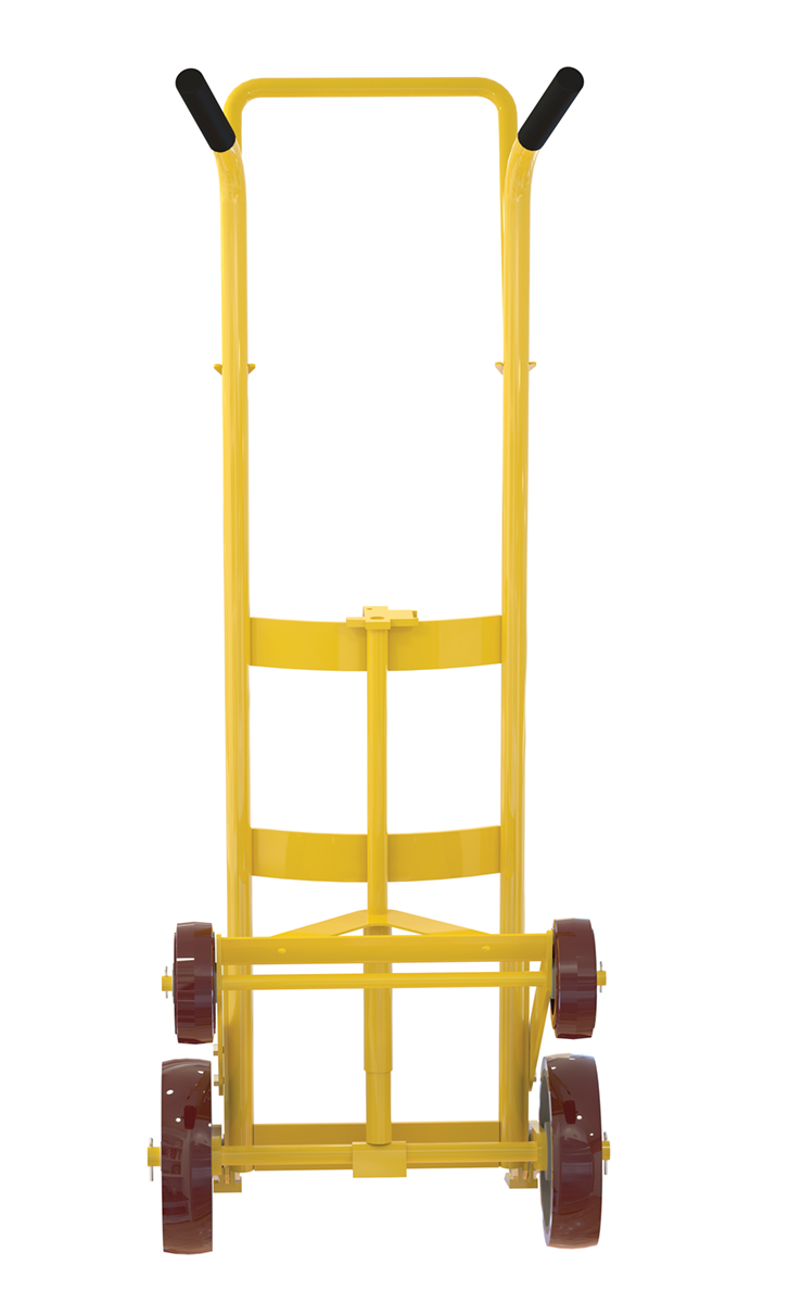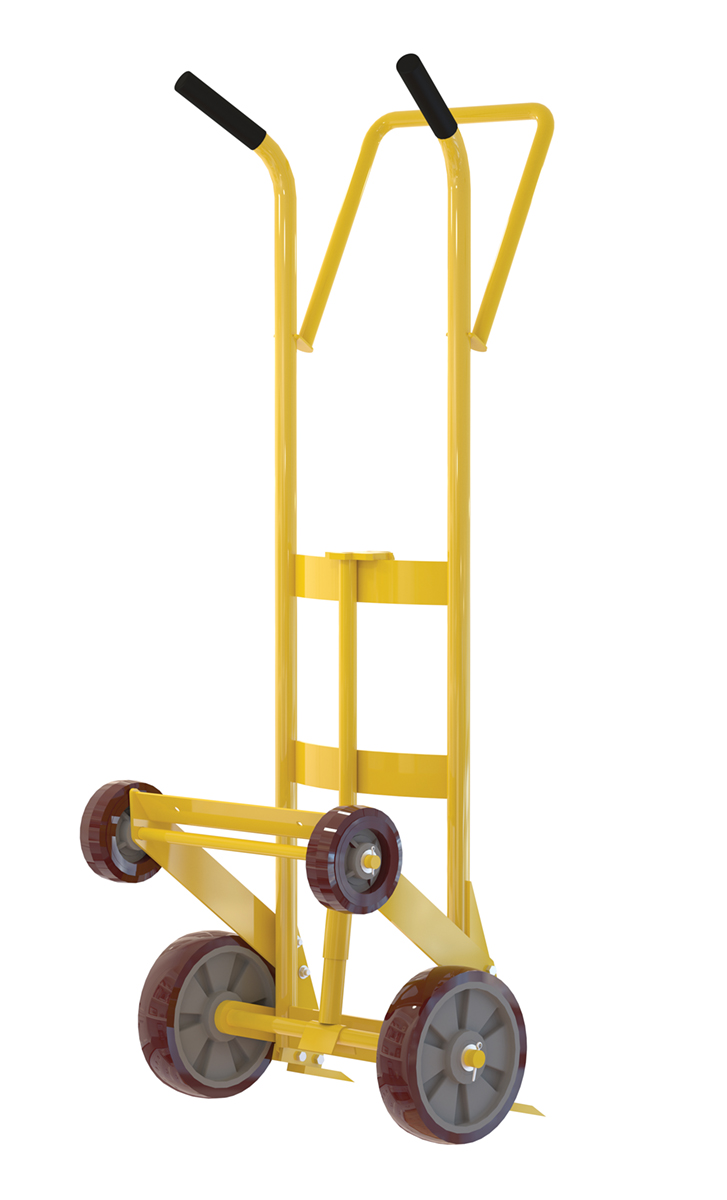 Designed for moving 55 gallon steel drums. Features a spring mechanism, which allows for easier tilting of fully-loaded drums. Four-wheel design for easier drum transportation when tilted. Top loop handle allows for easier control when moving. Drum is secured to truck with an adjustable height drum hook bar. Removable drum hook bar includes built-in bung nut wrenches. Capacity is 1,000 pounds. Steel construction with powder coat finish.