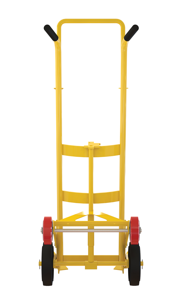 Steel Drum Truck with 4 Rigid Rubber Wheels for Plastic Drums 1000 Lb. Capacity YellowDesigned for moving 55 gallon plastic drums. Features a spring mechanism, which allows for easier tilting of fully-loaded drums. Four-wheel design for easier drum transportation when tilted. Top loop handle allows for easier control when moving. Drum is secured to truck with an adjustable height drum hook bar. Removable drum hook bar includes built-in bung nut wrenches. Capacity is 1,000 pounds. Steel construction with powder coat finish.
