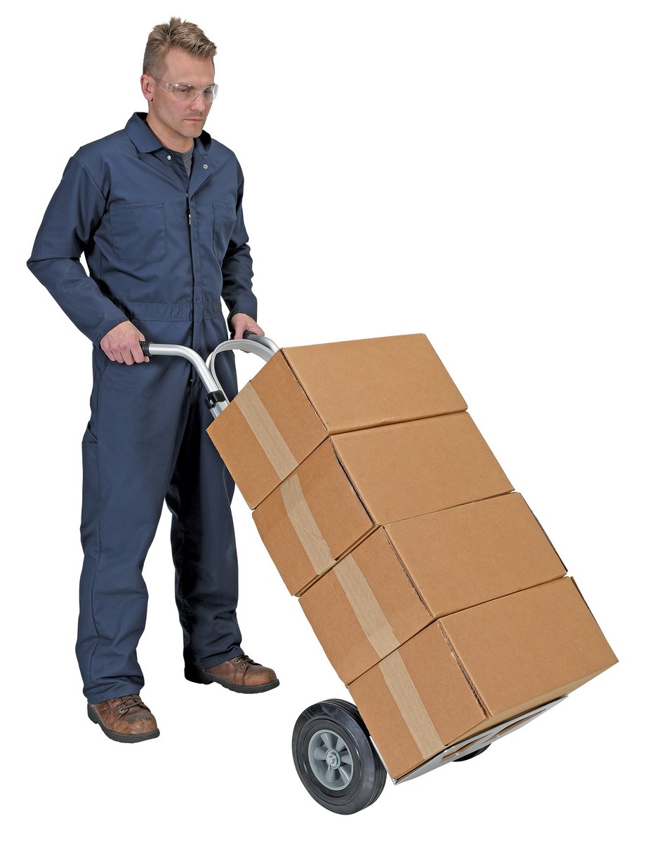 Maximize control for different loads with our dual handle Hand Truck. This hand truck can transport boxes or crates wherever they are needed. Transport loads smoothly and evenly over rough or uneven floors.