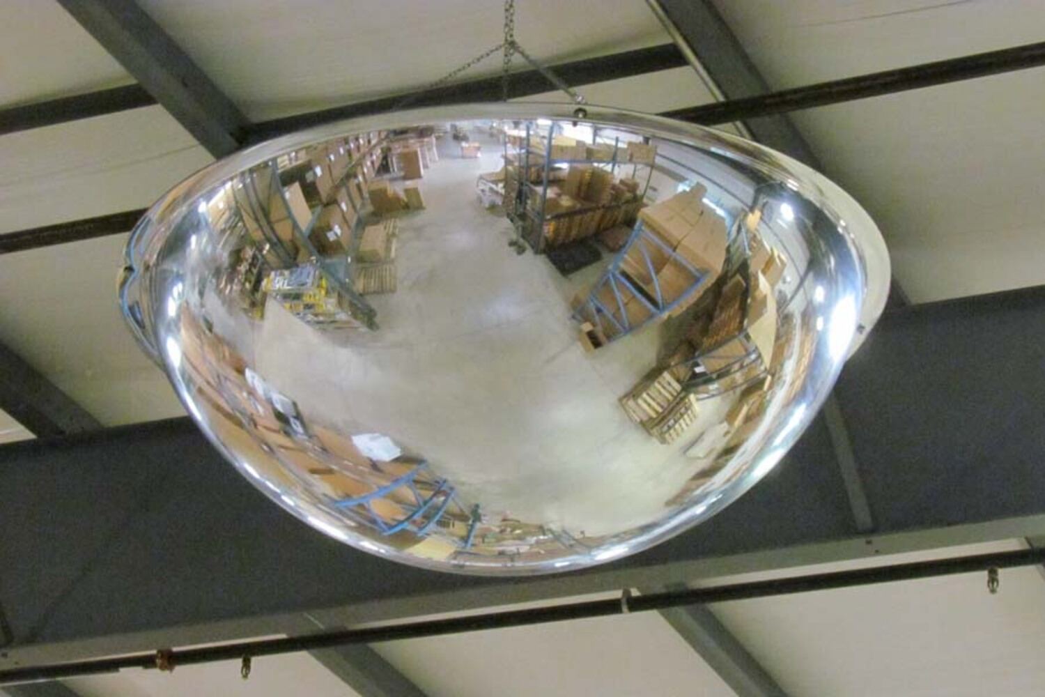 Acrylic Industrial Dome Mirror 28 In. Diameter 360 Degrees 30+ Ft. Viewing Distance Covered SilverThis convex mirror helps eliminate those danger areas found in most industrial settings. A lightweight design made from the finest quality materials and grade A optical acrylic. Mirror includes hardware for securing in the suggested pendulum-style hanging position.