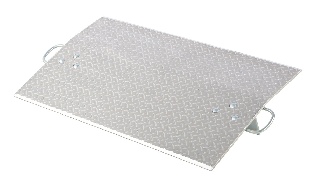 The aluminum economizer dock plate is an economical way to speed up truck loading and unloading. The unit spans the opening between dock and trailer to allow pallet or hand trucks along with traffic to safely move in and out of the trailer. The dock plate is constructed of high strength, non-skid aluminum alloy tread plate. The lightweight design with bolt on zinc plated legs and handles on each side makes portability easy. Locking legs for OSHA compliance. Not for use with fork trucks.