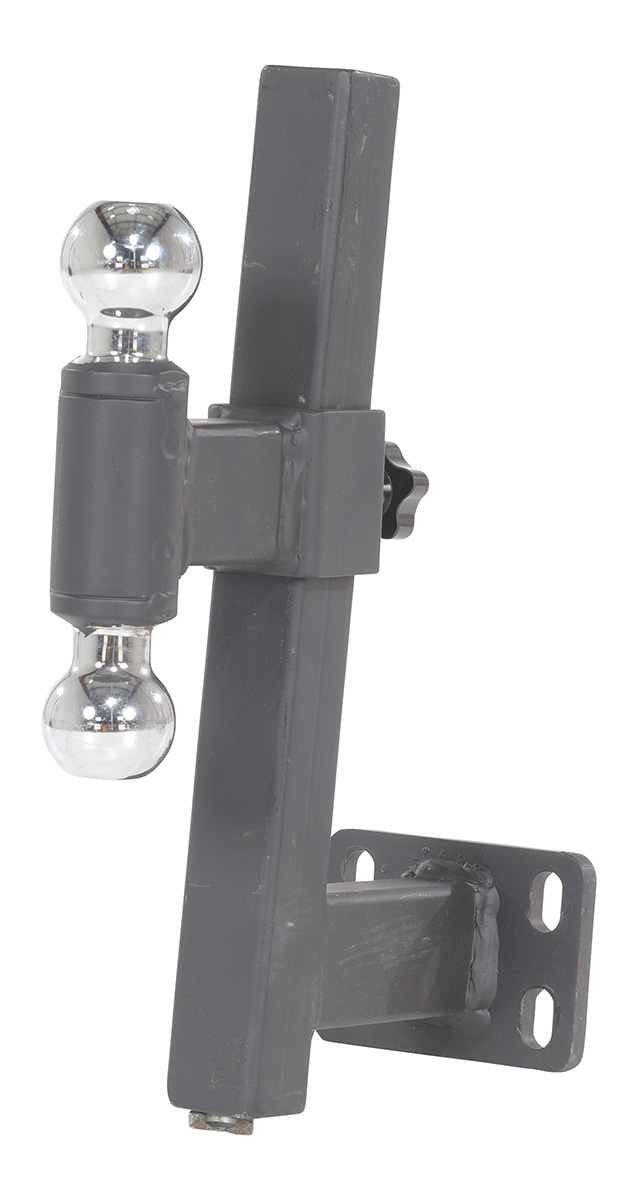 A double ball hitch gives the users needed options. With two different sizes, the user has the ability to switch to the ball that best fits their needs. Simple to switch from size to size, ensuring safety and security of items being moved. With a modifiable height, the ball hitch can be maneuvered to a precise connecting point. Pre drilled holes in mounting plate.
