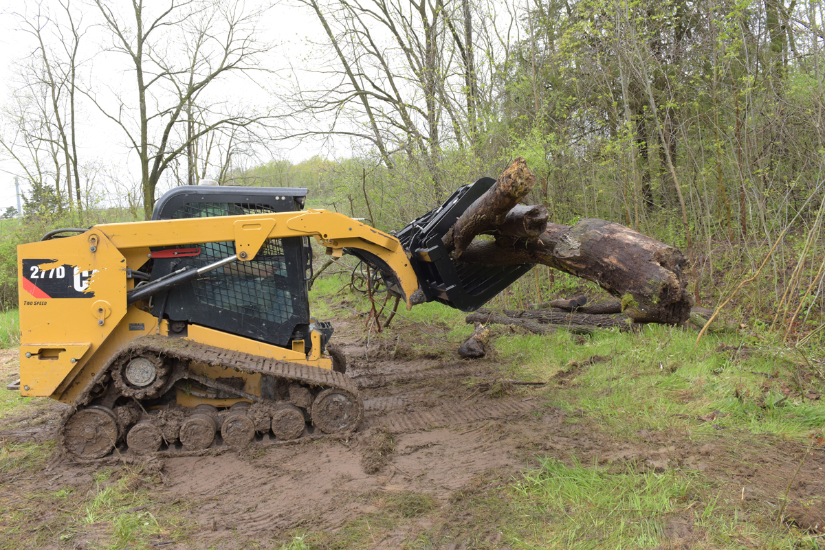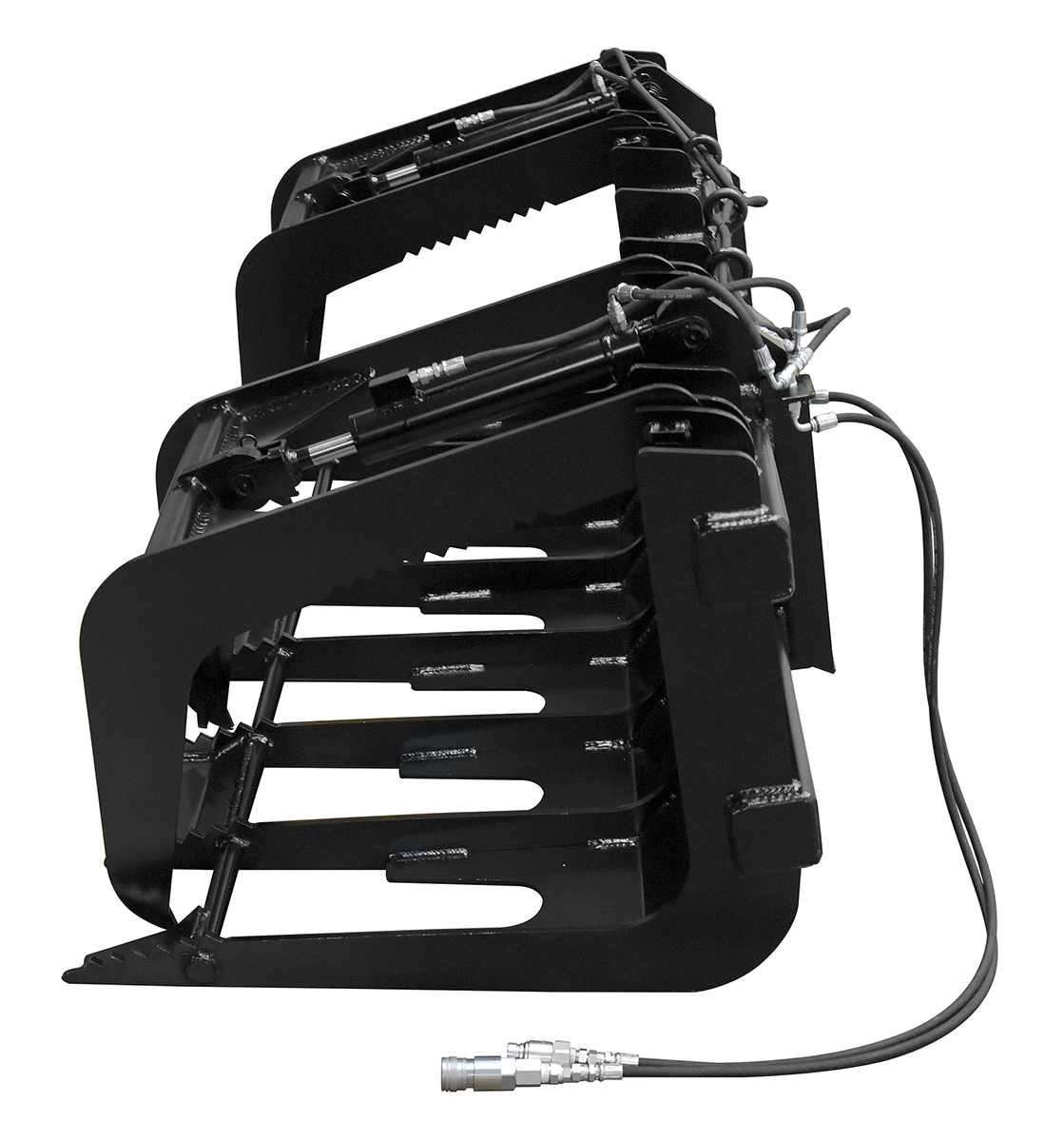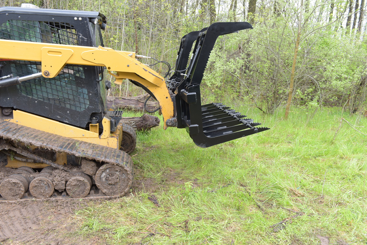 A grapple bucket is a great tool for landscaping and other residential operations. With a simple attachment, the bucket can be in place and ready to use almost immediately. Constructed of steel, the grapple bucket shows long lasting strength throughout use. With the help of the leading edge and two over the top arms, this unit is perfectly designed for clearing brush and overgrown shrubbery. The open grate style bottom allows debris and other loose material to fall through, leaving only the intended objects in the bucket.