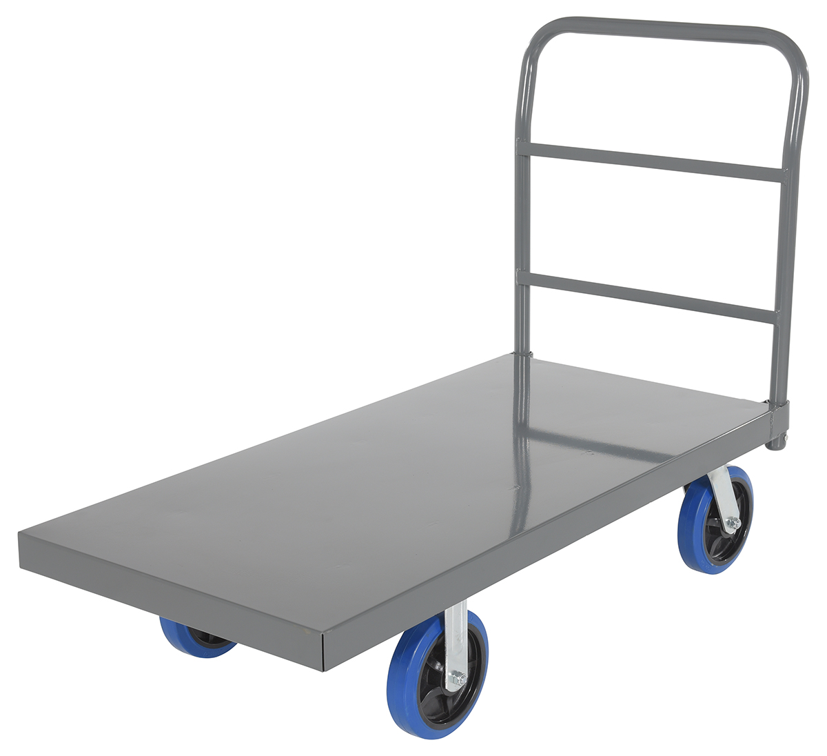 • Platform truck with solid, smooth steel deck is all welded for maximum strength