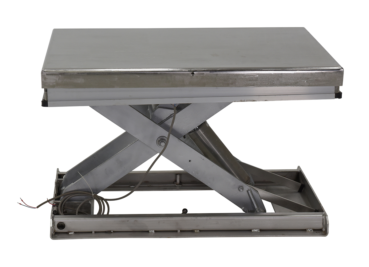 The work station electric hydraulic scissor table is designed to raise products up to an ergonomic working height. It maximizes safety with minimum space requirements and is ideal for all types of manufacturing and warehouse facilities. The external power unit can be located eight (8) feet away from the unit and comes with a standard hand control. An electric toe guard also comes standard with the unit.