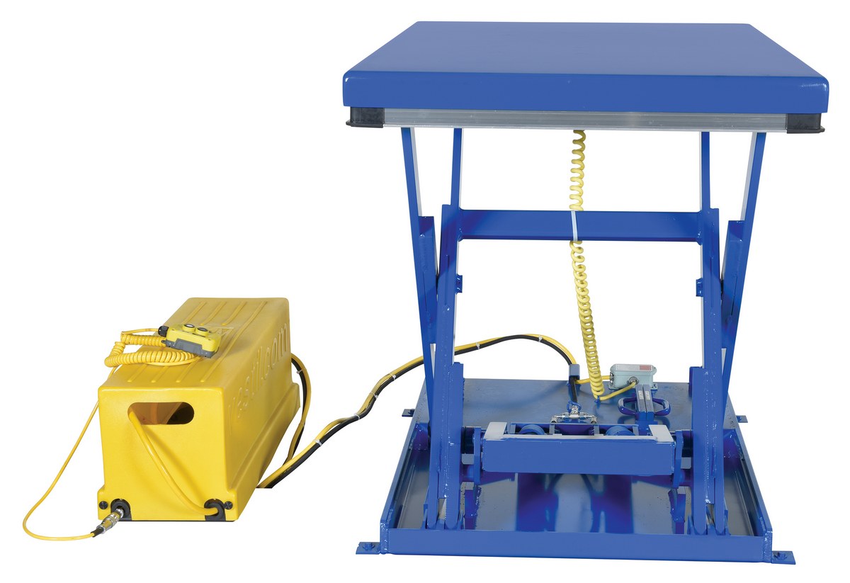 Steel Low Profile Electric Hydraulic Scissor Lift Tables 53 In. x 36 In. 2000 Lb. Capacity Blue