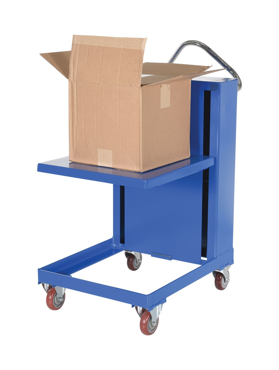 Steel Self Elevating Spring Table 20 In. x 20 In. 230 Lb. Capacity BlueThe self-elevating table is designed to automatically raise or lower as materials are removed or added to the platform, keeping material at an ergonomic work height. It increases productivity while reducing potentially harmful bending and twisting motions. The counter balance springs can easily be added or removed to adjust weight-to-height sensitivity. This feature allows the user to conveniently set the table to fit each application. It rolls smoothly on polyurethane casters.