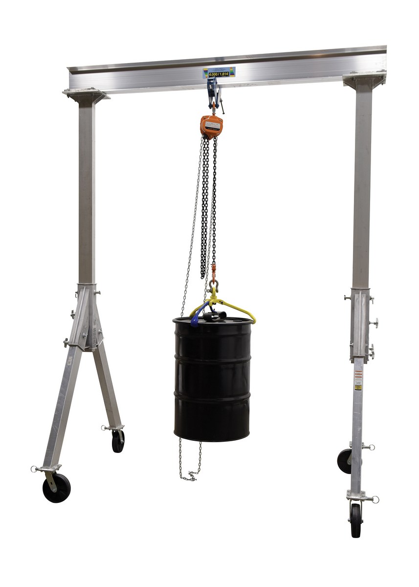 The fixed height Aluminum Gantry cranes are ideal for the manufacturing and maintenance facilities. The aluminum construction is easily manageable and can be simply assembled for immediate use. The unit has a fixed height for working in a permanent or semi-permanent environment. The casters allow the user to move the crane from workstation to workstation and smoothly roll over rough surfaces, while not marring. Do not move units while loaded.