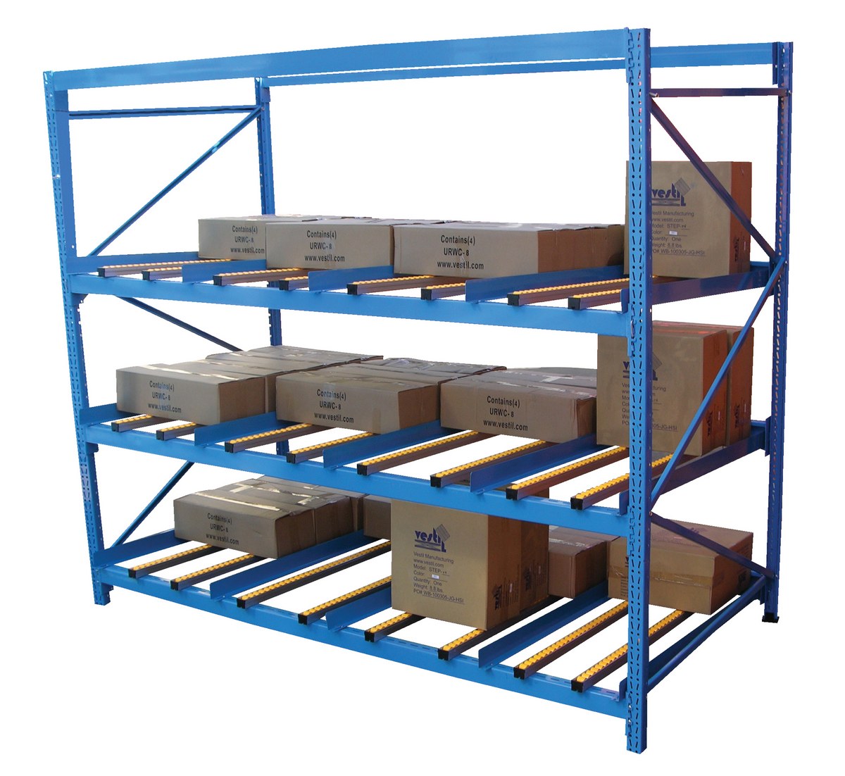 Steel Carton Flow Rack 4 Ft. Length 3 Level 1,000 Lb. Capacity Blue