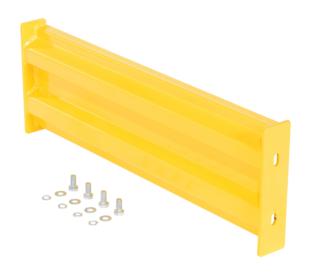 Protecting equipment, inventory, and most importantly individuals from damage or injury is always a concern. But, with a structurally strong steel guard rail those worries can be eased. This rail is double ribbed for impact resistance both indoors and out. A bolt-on style rail design allows the user to fasten the rails securely in place. Powder coated finish for built in added toughness. Additional posts are available and sold separately. If adding a rail to an existing rail and post section, only a single post is needed.