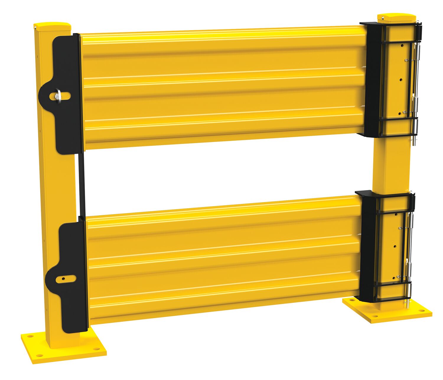 A guard rail gate is an excellent addition to the guard rail structure. The gate provides the user with access to behind the rail, while still maintaining safety for the surrounding objects. A 3-ribbed steel design adds strength and durability to the gate in case of possible impacts. Gate is safely secured to the rail by connecting brackets. Powder coat finish for baked in added toughness.