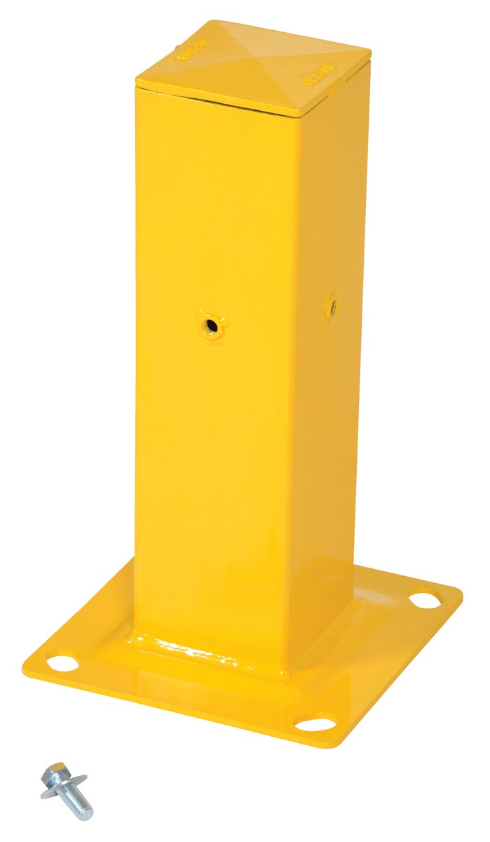 Steel Tubular Mounting Posts with Drop In Style Bracket 10 In. x 10 In. x 18 In. YellowThis high tubular post is the perfect corner piece for new or existing guard rail systems. The unit stands tall in a variety of settings and includes a smooth finish for simple maneuvering during setup. Base plate has pre-drilled mounting holes for quick installation to the desired surface. Additional posts are available and sold separately. If adding a rail to an existing rail and post section, only a single post is needed.