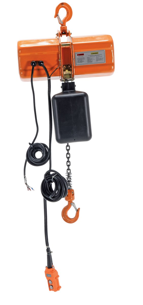 Steel Economy Chain Hoist with Chain Container 3 Phase 1000 Lb. Capacity Orange