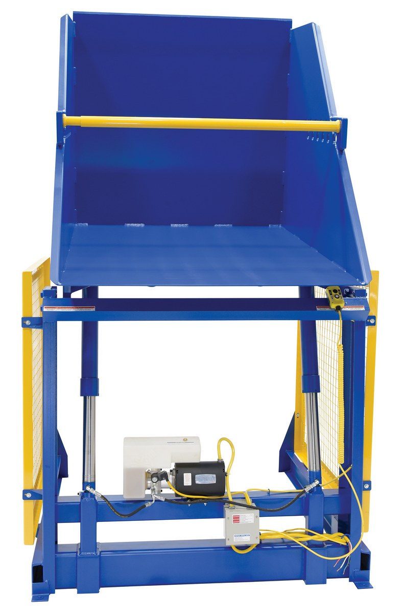 Steel Electric Hydraulic Box Dumper 48 In. Dump Height 2,000 Lb. Capacity Blue