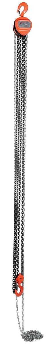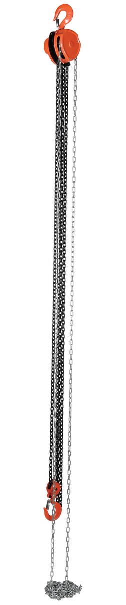 This portable, lightweight hand Chain Hoist is durable and easy to operate. Compact design and low headroom allow installation in confined areas. Enclosed double ratchet pawls with self adjusting disc brake standard. Designed with a safety factory four (4) times rated capacity. Individually tested at 150% rated capacity. Features black chain tempered to ISO 3077, pull chain, hardened two-stage gears and forged steel upper and lower hooks with safety latches. Constructed of high quality steel components ideal for industrial applications.