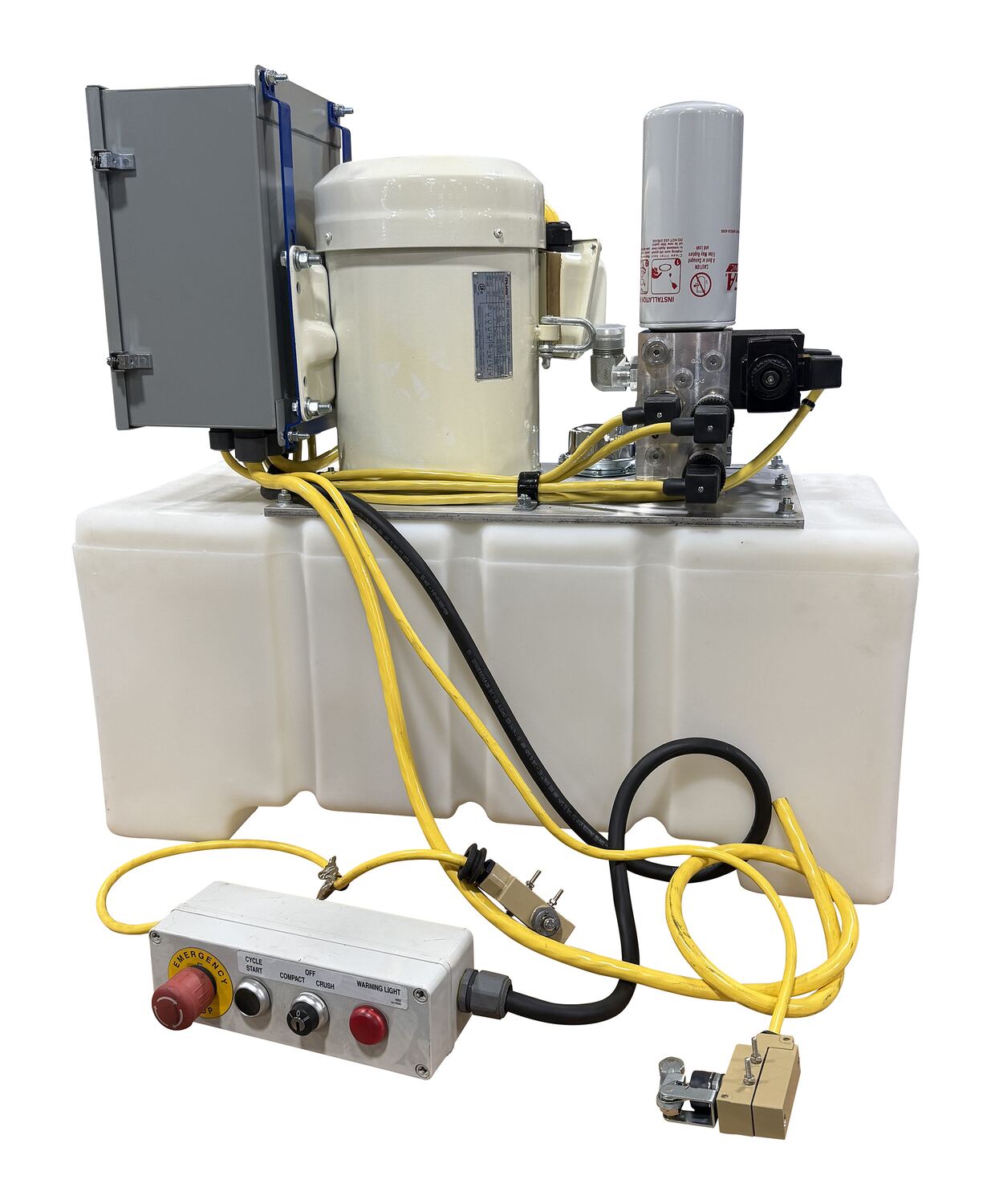Factory Installed Wash-Down Motor and NEMA Four Enclosure For Hydraulic Drum CrusherWash-down motor & NEMA four (4) enclosure. The wash down feature provides an enclosure for the electrical apparatuses to minimize the exposure to wet or corrosive substances. This option is best when used with warm or cold non-caustic low corrosive solutions, applied at a low pressure in an indoor environment. Please be aware, this wash-down feature does not eliminate the possibility of rust on unpainted surfaces or fasteners.