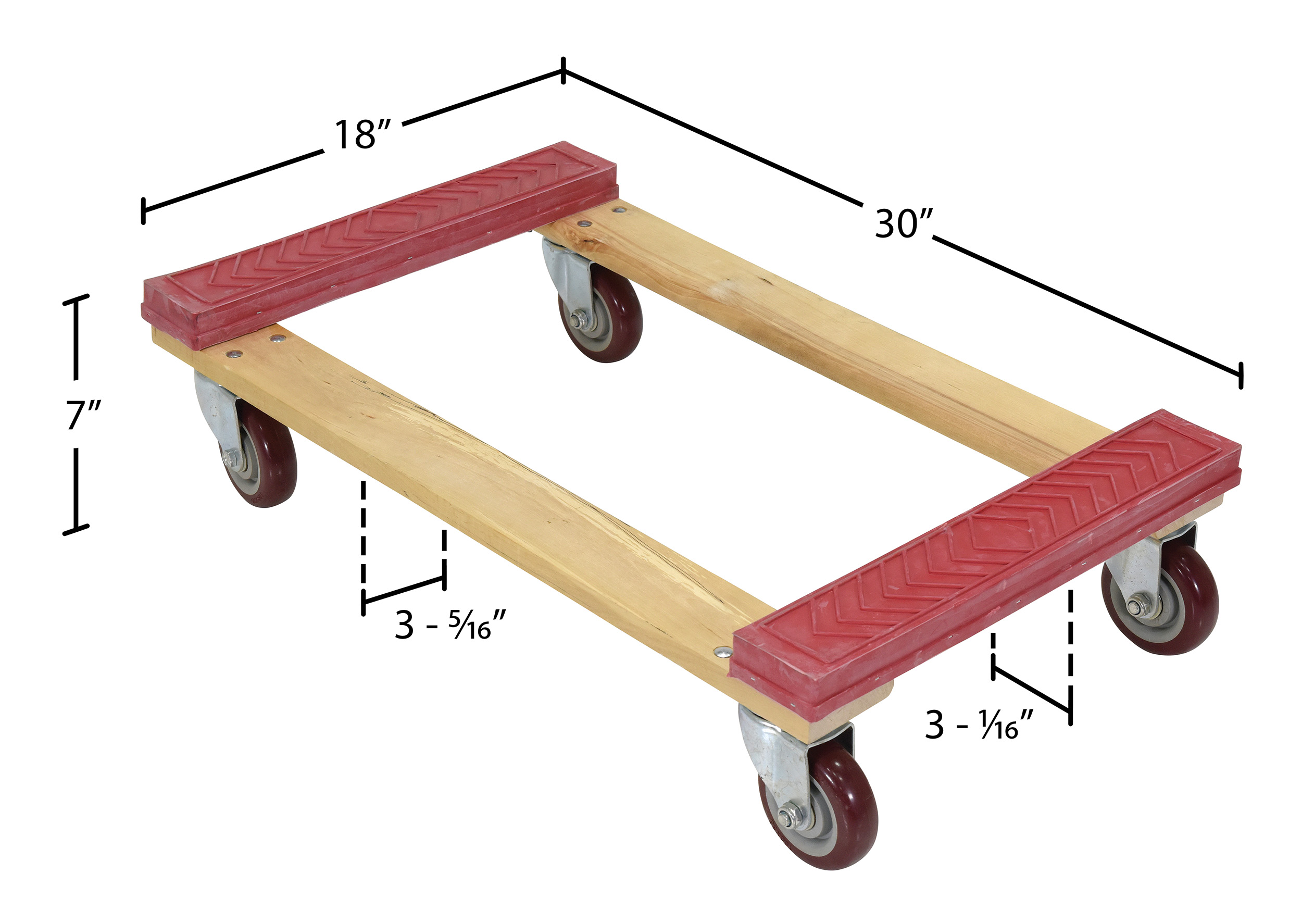 Hardwood Dolly Rubber Ends 30 In. x 18 In. x 7 In. 1200 Lb. Capacity Tan