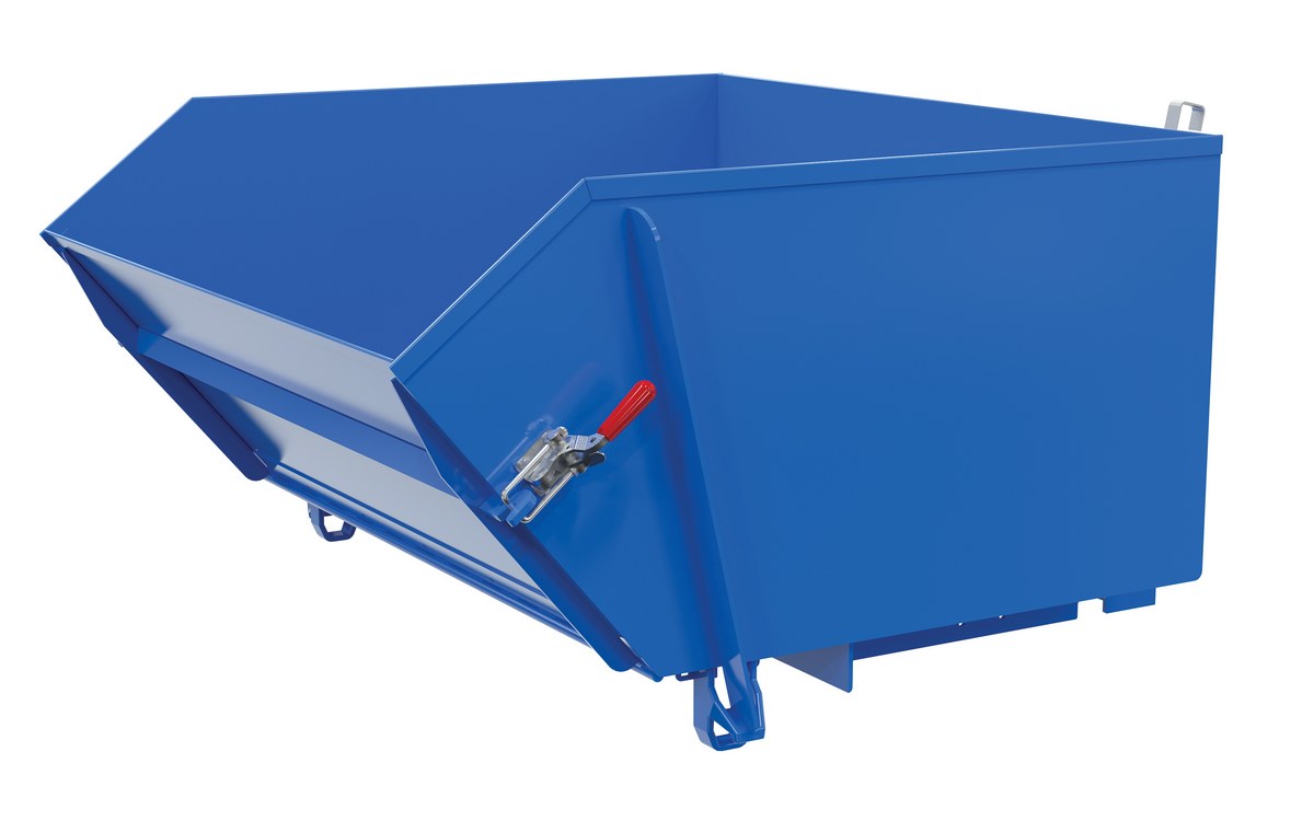 Steel Medium Duty Self Dumping Hopper with Fold Down Front 1 Cubic Yard 4000 Lb. Capacity Blue