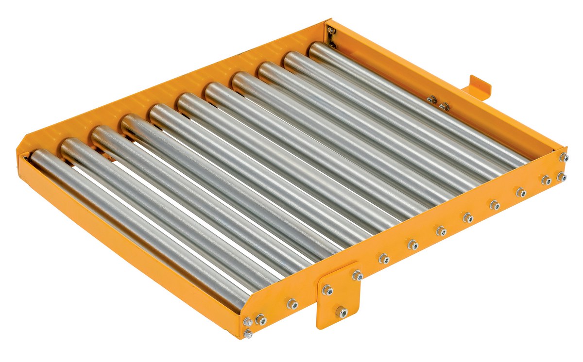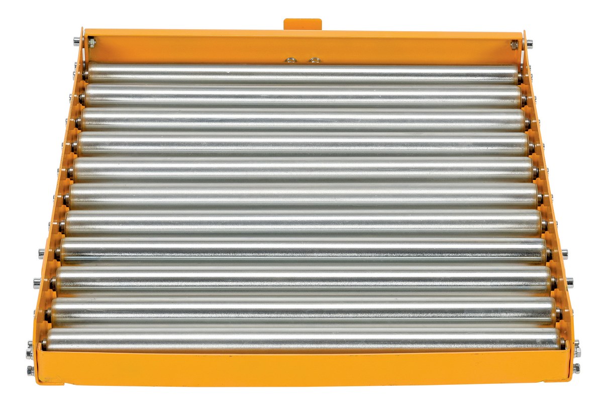 The roller attachment allows the user to roll items from the platform to another surface with minimal bending and twisting. Strong construction for longevity and a compact design for storage when not in use.