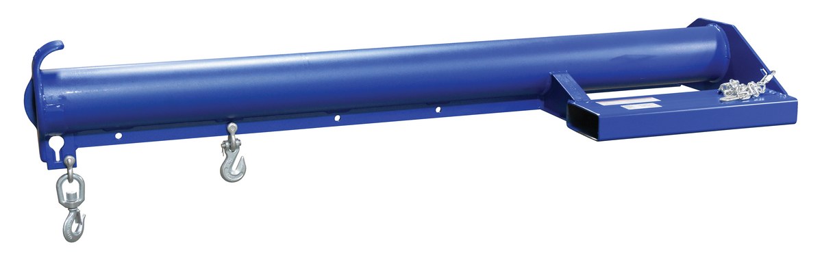 Unique performance, convenience, and safety features are built into every lift master boom. Fabricated from structural steel with welding to meet AWS creates a rugged and durable boom that will provide long term service. A safety restraint secures the boom to the fork truck for safe operation. Includes two (2) lifting hooks.