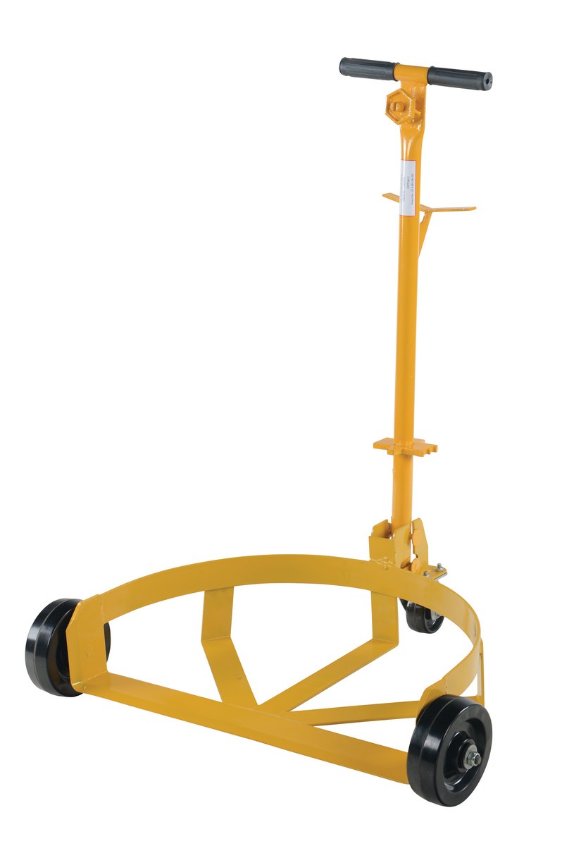 Steel Low Profile Drum Dolly with Phenolic Casters 21-5/8 In. x 31-5/8 In. x 37-5/8 In. 1200 Lb. Capacity YellowReduce injuries caused by manually lifting and moving drums. Transport drums or pails with the low-profile drum caddy. To use: align unit in front of drum, remove handle, and grip drum with the handle. Tip drum up while guiding the caddy base under the drum. Re-attach handle and transport drum to desired location. Caddy rolls easily on casters. The removable handle doubles as a bung nut wrench and seal remover.
