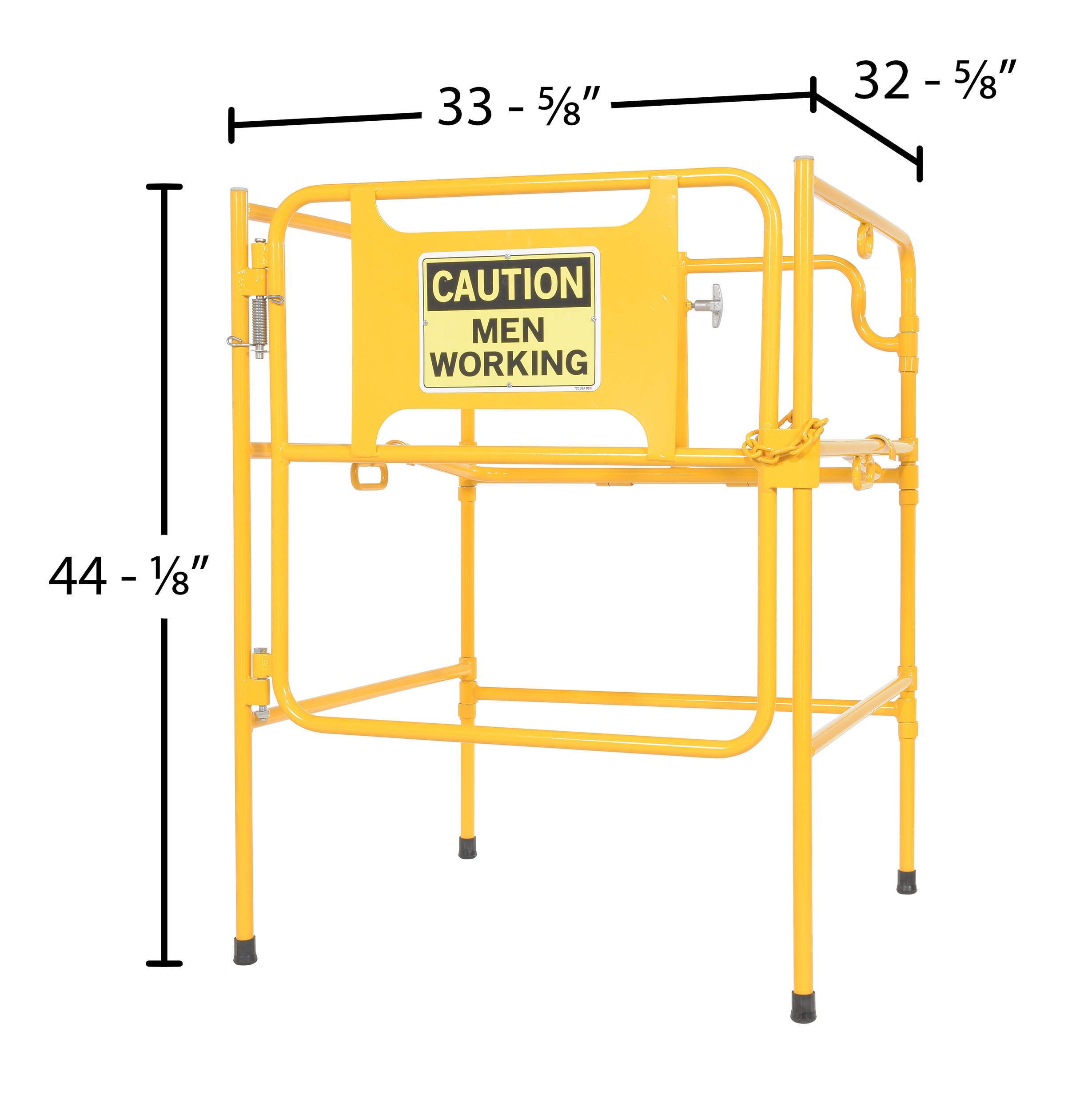 Steel Manhole Guard Rail with Aluminum Sign 31 In. x 30 In. Caution Men Working Sign Message Yellow