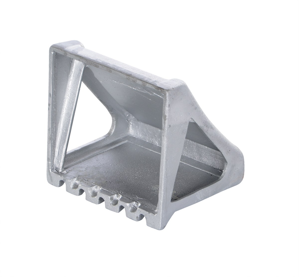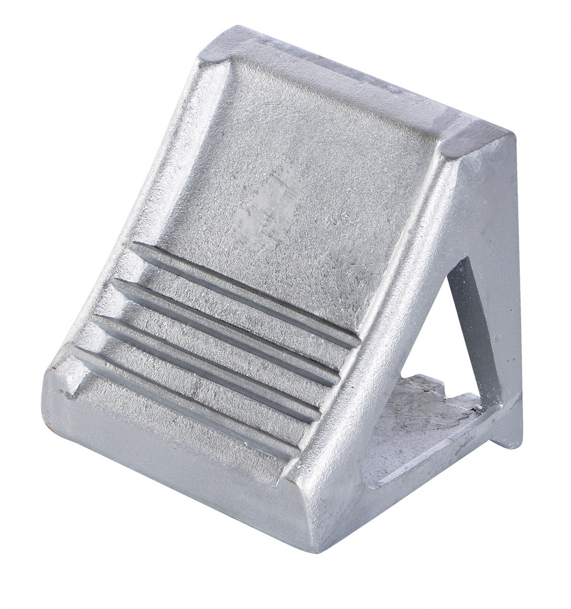 Cast Steel Wheel Chock 8-1/4 In. x 8-9/16 In. x 7-1/8 In. SilverThe cast steel Wheel Chock features a grip slot for easy pick up and positioning. Perfect finish of clean handling. Lightweight and compact for simple storage when not in use.
