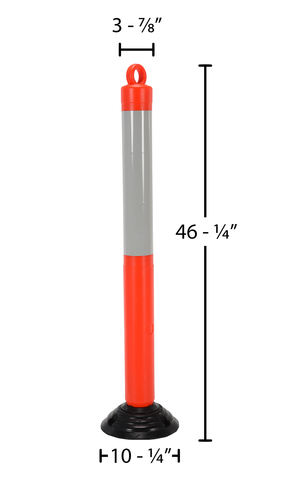 Plastic bollards are engineered for safety and the reduction of accidents. A fluorescent orange color scheme with white reflective tape promotes safety and visibility. A loop located at the top of the unit enables easy handling and is ideal for any workplace. Spring loaded for forgiveness when contact by an outside force. Base has 3 holes for mounting to surface. Hardware for mounting base is not included.