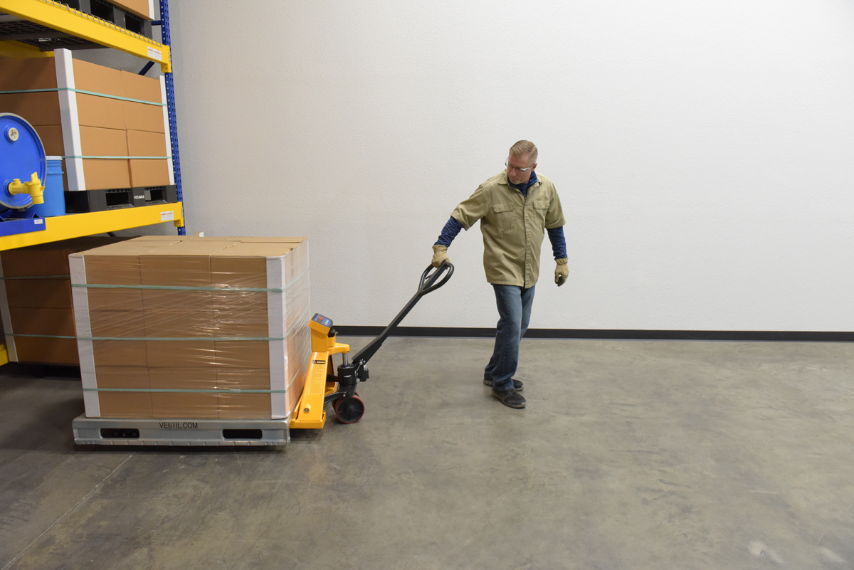 Steel Low Profile Economy Pallet Truck with Scale 67-1/2 In. x 27 In. x 47 In. 5000 Lb. Capacity YellowAn economy pallet master with a digital scale helps to maximize efficiency in the workplace. The scale allows the user to weigh the load on the spot for more streamlined shipping experience. A hydraulic hand pump operation lets the user find the perfect positioning. The frame is designed of steel for maximum strength and durability. The scale includes many options that can be selected to best fit the users’ needs. A powder-coat finish minimizes abrasions that may occur during handling.