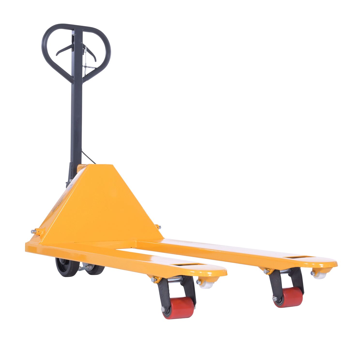 Steel Pallet Truck with Brake 66 In. x 27 In. x 49 In. 5500 Lb. Capacity YellowThe pallet truck with hand brake option allows you to depress the hand brake to slow down or stop truck.