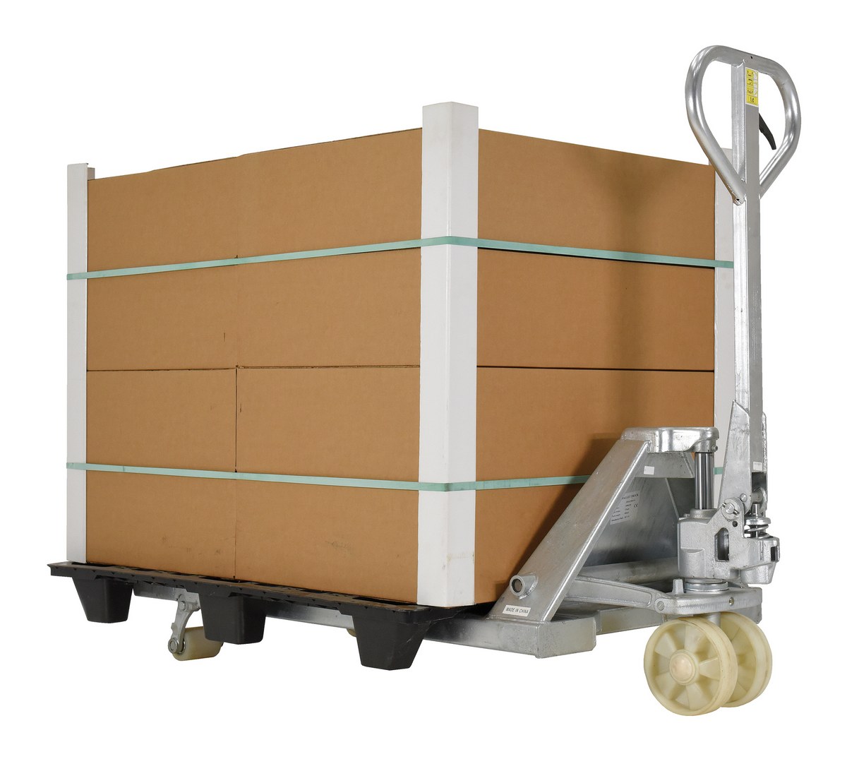 The specialized pallet truck is ideal for corrosive environments. The full-featured pallet truck is designed for chemical, pharmaceutical, and wash-down applications.