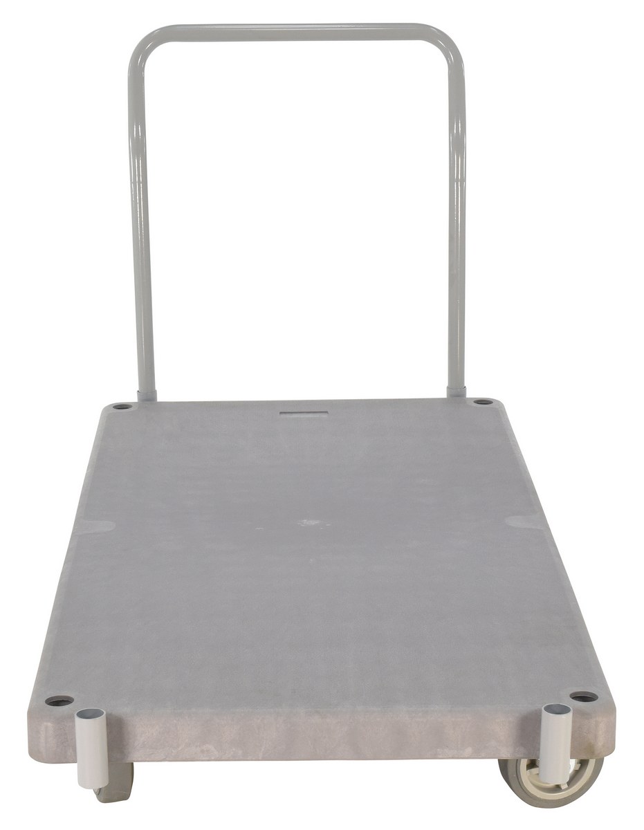 Plastic Heavy Duty Platform Truck 1 Handle 63-1/2 In. x 30 In. x 34 in. 3000 Lb. Capacity GrayThe heavy-duty plastic Platform Truck will not rust, discolor, or warp. Maintenance free and easy to clean. Honeycomb construction is reinforced for longer life. Extra square steel tube underneath platform to reinforce deck strength. This six (6) wheel unit rolls smoothly on polyurethane casters.