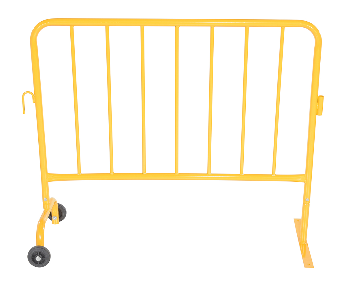 Steel Crowd Control Interlocking Barrier with Feet (1) Wheeled (1) Flat 47-1/2 In. Length Yellow
