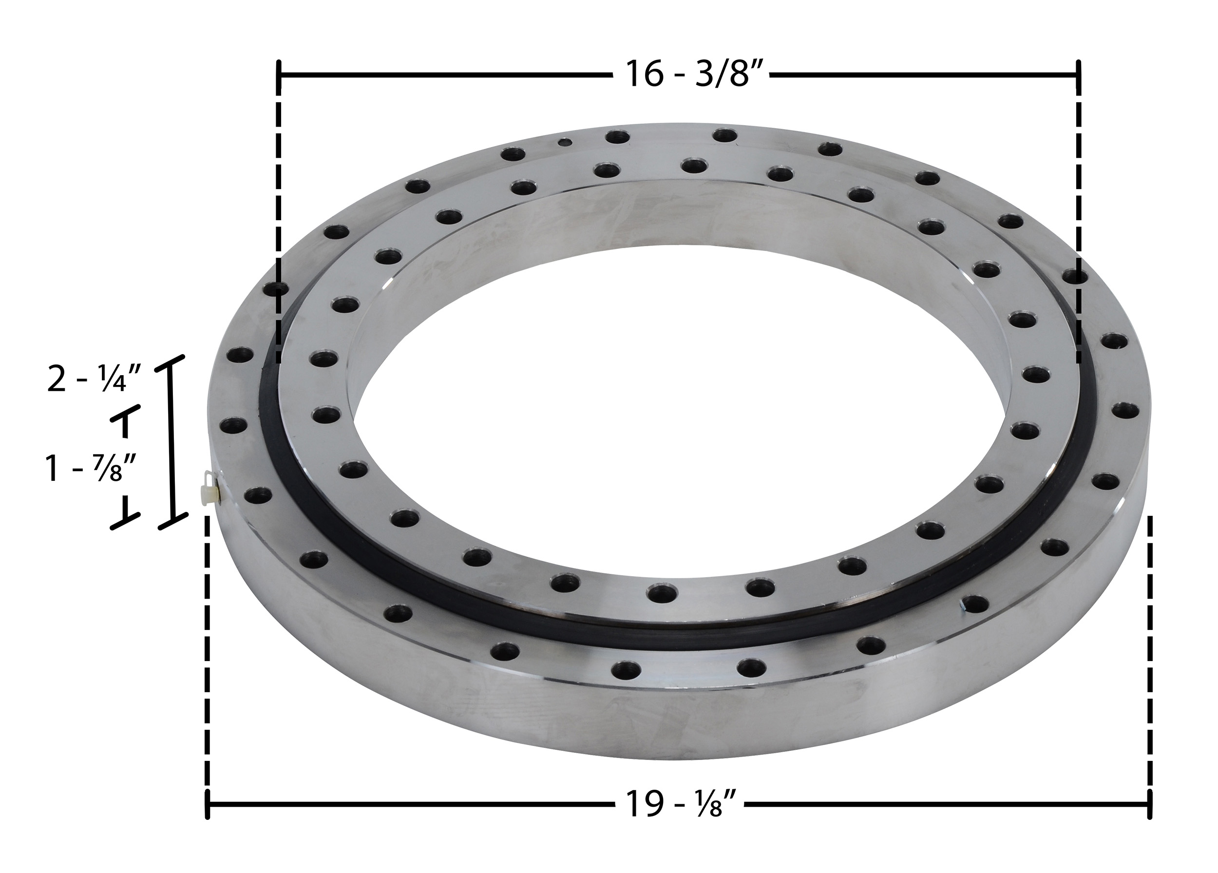 Steel Precision Turret Bearing 19-1/8 In. x 19-1/8 In. x 2-1/4 In. 6000 Lb. Capacity SilverThe precision turret bearing is ideal for consistent turntable maneuvering. The bearing is able to meet the most precise degree, when they matter most. The unit can be used as a stand-alone carousel in a variety of manufacturing settings. With a lightweight construction the bearing is easily transported and turned softly during procedure.