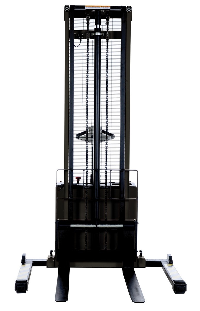 Steel Adjustable Powered Lift Stacker 150 In. Raised Height 2000 Lb. Capacity Black / Yellow