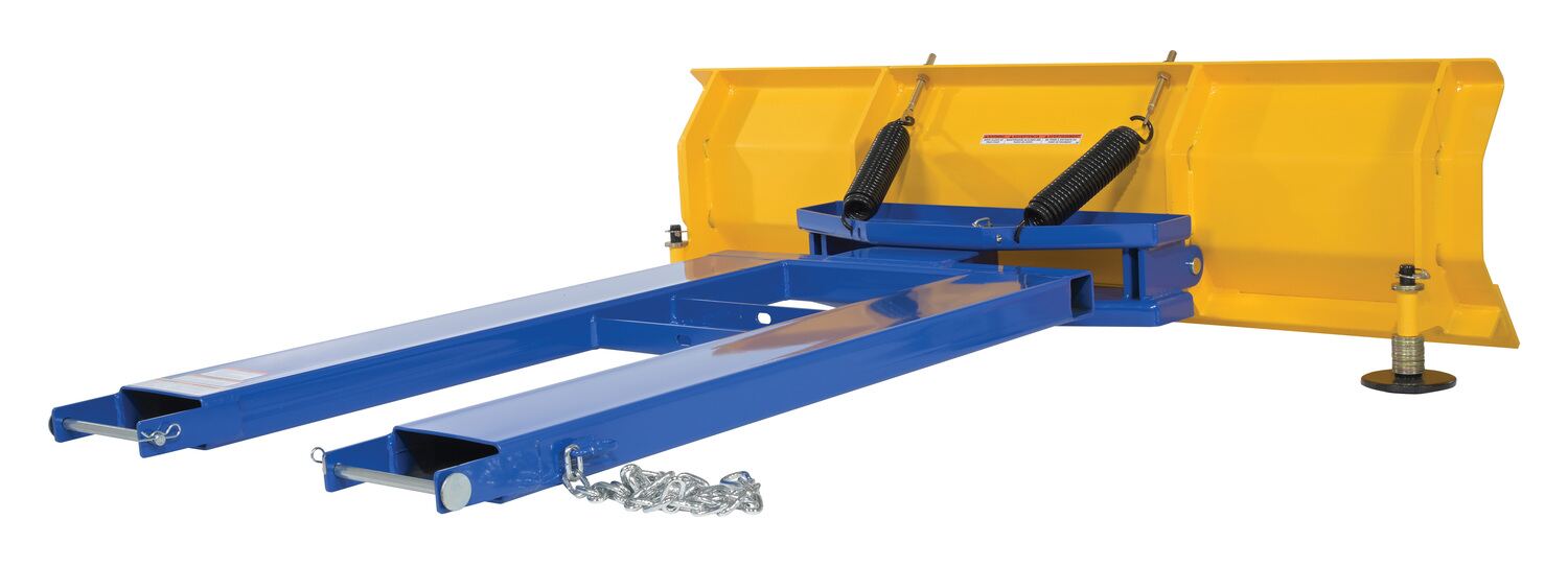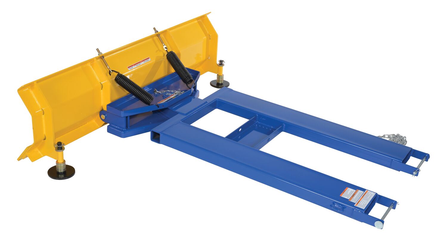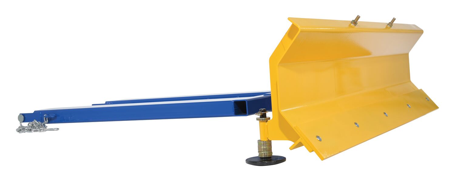 When snow needs moved and removed, look no further than the fork truck snow plow. The unique design attaches to fork truck forks, so no power supply is needed! The design of the plow keeps the weight to the back of the unit, towards fork truck mast. Manual pivot mechanism for angled plowing on both sides. Steel construction with baked in powder coat finish for added toughness.