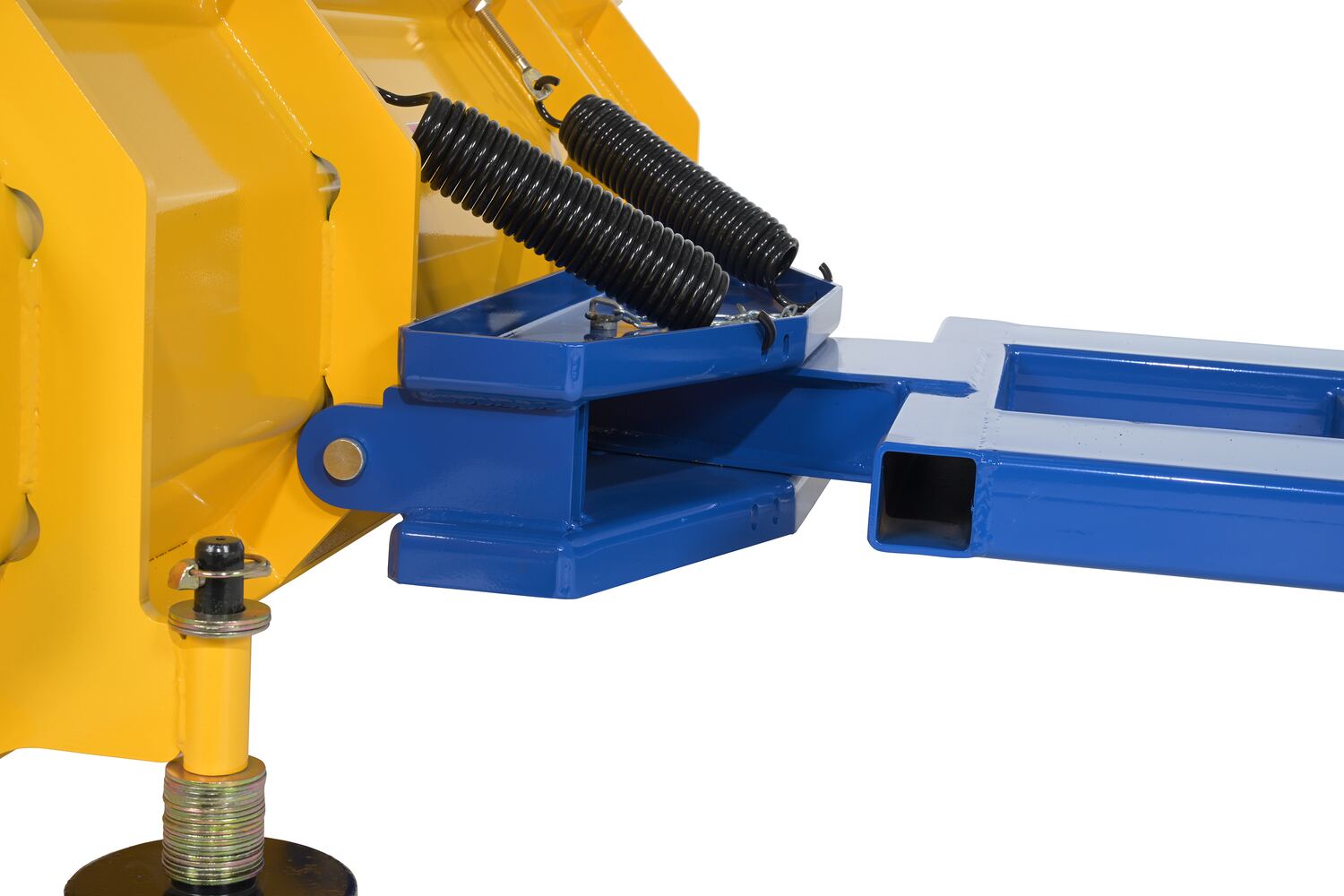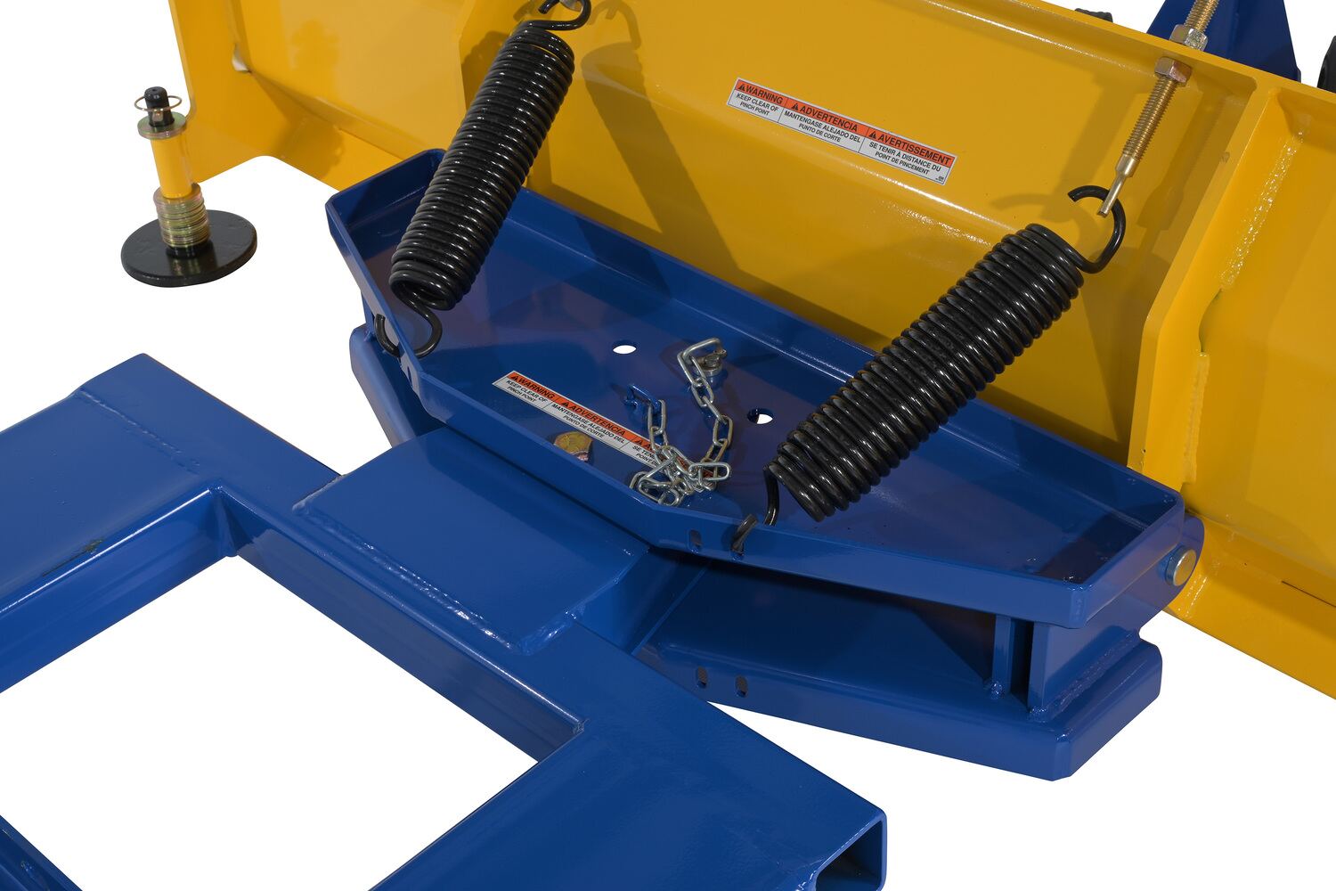 • Locking pins for securing snow plow to forks