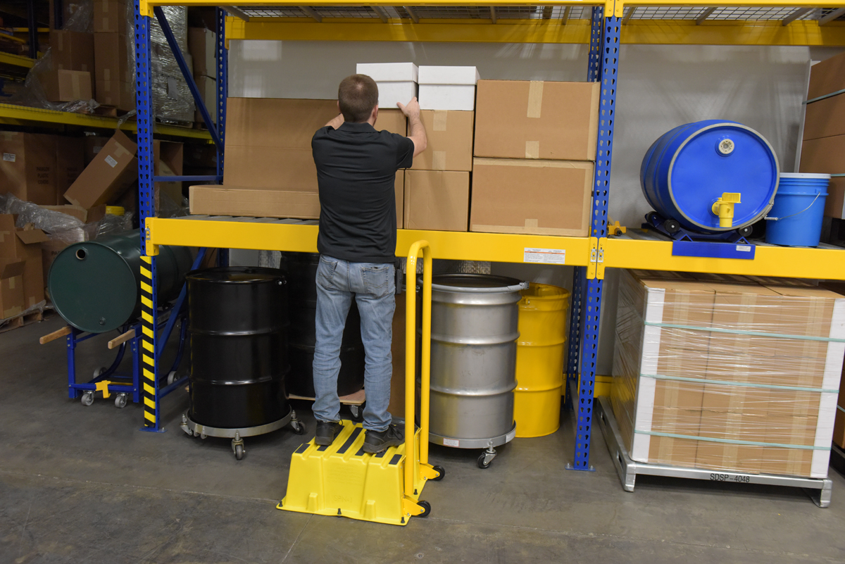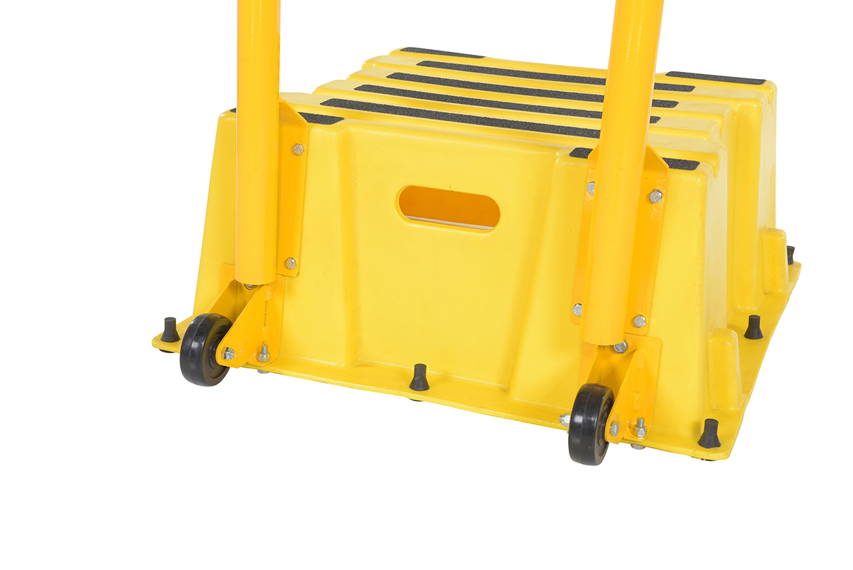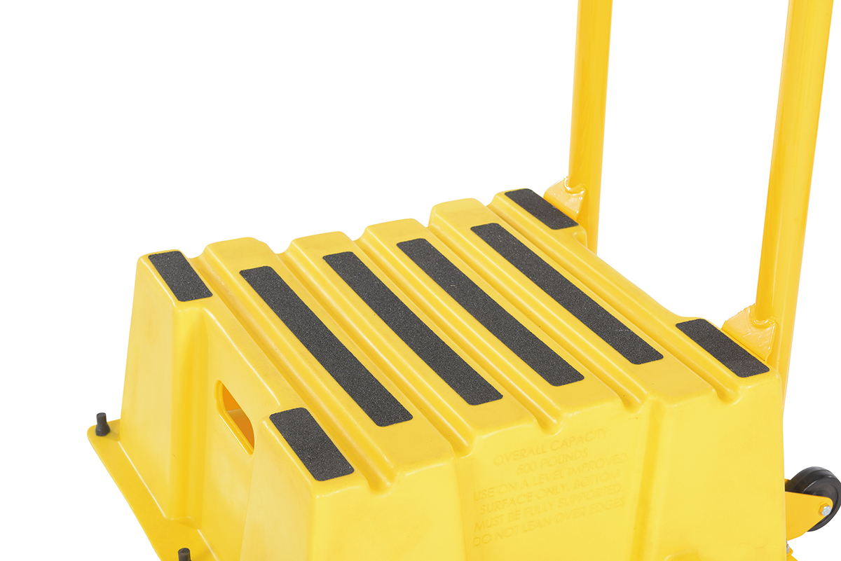 Polyethylene Nestable with Handrails Casters 1 Step 500 Lb. Capacity Yellow