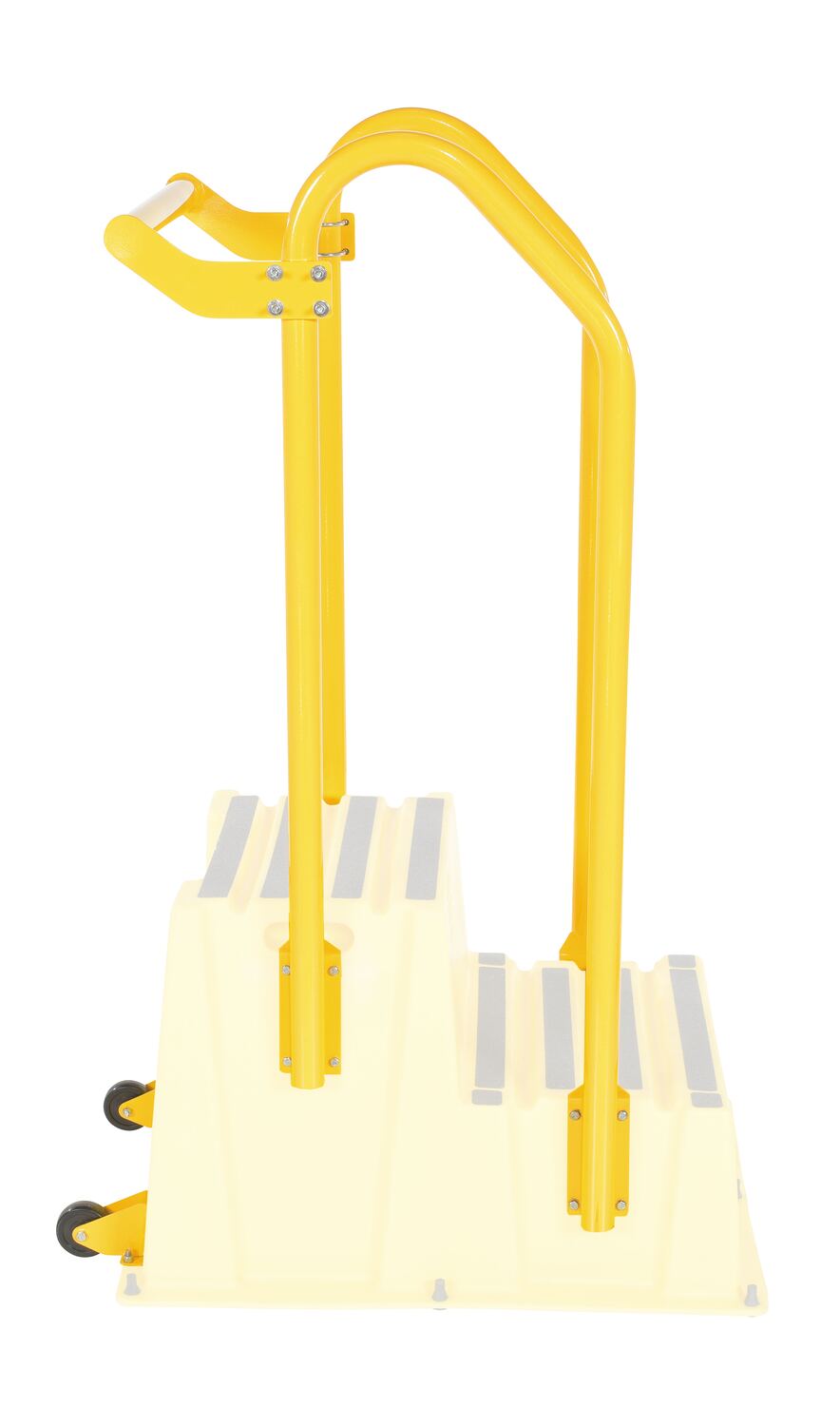 All Options Kit For 2 Step Poly Step Stool Models YellowTransform your Vestil poly step stool into a premium design with this complete options kit! The kit includes caster brackets, wheels, handrail assemblies and hardware. Not only does this kit allow the stool to be pushed or pulled from work area to work area, but it adds safety as well. The elevated handrails provide the user with a sense of balance while climbing or descending the step stool.